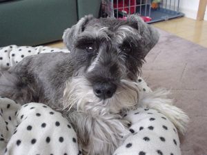 =今朝チョコ=おとといの夜かな?眉毛をちこっときりました。眉毛だけ切ってもアイコンタクトはとりにくい。眉頭とか鼻筋も少し。(-"-;)いつものことながら、難しい。毎回2ヶ月はゆうにトリミングに行かないし、今は冬で今度またスキーへ行くことと、耳のあかぎれのようなもののため毛は伸ばし中。なので、次は2月の終わり。前に行ったのは11月。かなりぼさってきました。体はブラッシング回数を増やすことでなんとでもなりますが、顔はだめ・・・・(゜O゜;なので、はさみで切りました。いつも思うことですが、白い毛はくにゃくにゃ腰がない。グレーだったり、黒っぽい部分はしっかりしててはさみをいれてもらくらく。↑(^^_)ルン♪なので、白いところがたいてい失敗する。なのに・・・・眉毛かおまわりは・・・・白いところが多い。ちぇ、(-_-)そして出来上がったのがコレ。あは。全然わかりませんよね。尻尾のときと違って、切った毛もすごい少しだけですし。わかりませんよねー。ヘ(^^ヘ)))。。。じゃ、次のお話へ。えへ。ヽ(´▽`)/本日は2度目の歯医者。行ってきました、先ほど。チャリで。午前の買い物もチャリだったけど、午後も今日は暖かいので、いってみました。ひかれちゃいそうでした。娘ではなく、σ(^_^;ワタシ?だめだめなんです。後ろで12キロの物体が動くと、ふらつくし。何しろまだ道路のあちこち(日ごろ歩きとかチャリが通る端っこ)に雪がつんであるから始末に悪い。コレが何日か前だと、凍っていた。( ̄□ ̄;)!!だから到底私は無理だと思って避けていた。何とか本日くらいならいけたのに。娘のチャリ技術もそう安心できるレベルではない。(公道でなければ問題ないけどやはり雪のこともあるし)で、振り返りふりかえりなどしてる上に、息子は娘と手を振り合うのが楽しいらしく・・・・・・・・・・・・相当振り回され、思わず車の前へ出ちゃいました。狭い道だし、カーブだったので、相手がかなり速度を落としてるからよかったものの・・・・だめ母です。(ё_ё)典型的運動神経なしです。(´ヘ`;)ハァ。今日は中華丼の予定だったけど、ちょっとゲンナリしてしまった。帰りにドーナツでも買ってきて、気分晴らしたらよかったなー。チャリはうまくなれますか!(T_T)おしまい。