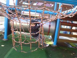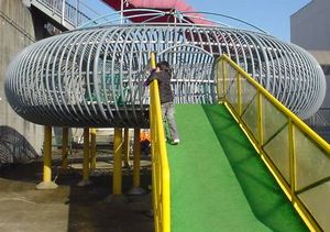 =黒ピクミン発見!=黒ピクミンが、オニヨンから降りてきた様子でございます。だれてますねー。(@_@;)あははは。遊具です。でもふと、あのゲームのアレに似てるなーなんて。。。浮かんじゃったので。とってみました。変わった形ですよね。中をぐるぐる回るだけ・・・・の遊具?不思議です。ま、いいか。(#^.^#)今日は午前からお出かけ。お友達のN-さんと、そのうちの下のこT君と。待ち合わせ。久々元気になったし、少しは動かないとってことで。(^^ゞ本当はがんがん晴れてれば外だったんだけど。。。。一応晴れてもやんで間もないので、どろどろぐちゃぐちゃ。2~3歳児が二人で遊ぶにはきつめなので、ショッピングセンター?のなかで待ち合わせ。とりあえず、お昼までは様子を見てみることに。と、偶然!大好きなママさんに遭遇。わーい♪↑(^^_)ルン♪声をかけてもらっちゃった。とってもお忙しい中だったので、うふ。うれしい。聞いていても目が回りそうよ、ってほどスケジュールが混んでいた。なので、年始の挨拶(一応顔をあわせたのは今年初だったので)と、わんは?ってことだけで、マシンガントークにお互いはいる前にさよならをした。次はお茶お茶!ランランしましょう~。あ、お茶は4月からのほうが安全かな。。。R2がいないすきにって狙えるし。うふ。ままさーん、今度是非是非ゆっくり。元からタイミングとか、偶然についてるんです。ママさんとは。そういうのってありません。どうも、いつ約束してもなんか障害ができたり、突然だめになったり・・・・することがある友達っていたりしません?気が合うのに、どうもタイミングだか、二人の間に運がないというか、妨げられたりが多いこととかある。。。。。っていうの。(一人いるんです、残念なことに。どうもお互いの子の体調があわず結構約束をするたびにだめになったり・・・ついてない)が、今日会ったママさんとはなーんか、出会いからだけど(^^ゞタイミングが合うっていうかどうもいいかんじ。なーんて、私が勝手に思ってるだけなんですけどね。えへ。o(^o^)oうれしいなっと。そのご、友達と合流。お昼まであれやこれや子供の見たいもの、母が見たいものちらちら見てすごし、お昼を一緒に食べた。えび・・・なんとか。CMで見て、えびちゃんがえびの宣伝だ!と思ったあれ。(*^_^*)おいしかったぁー。うふ。私はとにかくえび好きですから。贔屓目かな。ぐらころは苦手だけど、えびちゃんはグー!(^^ゞそして、その後、この遊具のある広場で遊んだ。そうですねー、2時間強かな。学年は違っちゃうし、学区が違うけど、楽しそうに。友達のこってかわいい。。。。なんでだろ。不思議。自分の子だったり、知らない子だとシビアに・・・・ちっ!って思うことも友達のこってなんか許せちゃう。うーんなんでだろ。ソレは大人が周りにいてもいなくてもかも。私が子供が欲しくなった一瞬はソレだったし。その前も、そのあとも・・・・子供がほしいと純粋に思ったことはほとんどない。。。。母性が少ないのか。(ё_ё)そんな私が子供かわいい!と思ったのは先ほど述べたどうもタイミングがあわないが、気の会う友達。。。なのだ。これまた話の流れの偶然。彼女と会社で同期で入社してなかったら・・・・今の私はないに違いない。人生って不思議です。どこでどうくるっと変わるかわからない。。。そしてその後どうなるかもその時点ではわからない。だから、私はそのときそのときを楽しむことにしてる。(*^。^*)どんなとこでもどんなときでも、きっと自分なりに楽しくはなるはず。人が持ってるものを持ってなくても、そのときの自分で何か見つけられるかも。と。まあ流されてみるのも楽しいかな~なんて。今みたいに、ほとんど休止状態の時間でも何かできたりするって。ささやかな、たとえば動画ひとつでも、アップできたらそれはそれで前進、人から見たら、半歩くらいでも(半歩以下かしら?)のそのそいけてればいいかな~って。あれ?(:D)┼─┤話がどこか違うところへいっちゃった。あは。ま、いいか。ではでは。このへんで。(^o^)/~~~