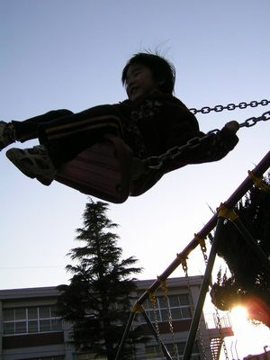 =遊具にて=こんばんは。o(^o^)o珍しく、ボーっとするこの時間に洗濯機がまだ終わらず、更新してみてます。先日お友達と楽しく遊んでいるときの写真。あははは・・・・なんだか気に入ったようで、コレばかりやっていた。つかまってるみたいです。((((((^_^;)ま、楽しければいいのかな。公園はいろんな子がいてソレはソレで面白いです。そう楽しんだり、友達と喋ってないとこの時期やってられません。寒すぎ。もちろん、でかい体で、一緒に!ってわけには行かない遊具も多いですしね。広場で縄跳び・ボールなら遊べるけど。。。。タイトルの兄弟って・・・・は、本当に別の人間で、違うんだなーって日々感じてきたので、なんとなく。(^.^)同じDNAどうしをかけても、違ってでるから不思議です。育てる人間も同じなのにね。まあ多少育て方は違っちゃってるんでしょうね。親も年とったり、親としての経験も増えるから?ある意味手抜きも増えるから?そして生まれたときの家族構成が違うから?状況っていうか。本当に不思議でございます。どちらがどうっていいきれないけど。。。。。この間の「足じゃんけん」まあまだ息子は3歳だから、どこか一点に集中して意識してそこだけ動かすとかが難しいのもあるのかもしれないんですけど。パーについて。・私は、左足でだけできる。・娘は両足できる。・息子はできない。が!コレが、体のやわらかさになると。。。。。・私は床に手をつくどころか、床から手は15センチは離れてる。(まあコレはかたすぎなんですけどね)・娘は手の先がつく。・息子はべったり手がつく。年齢のせいではございません。娘は小さいときから、赤ちゃんのわりには固いナーって私がとってもかたいので、小さいうちからやってあげないとなどと考えていたのでよく試していた。。。。。。息子はもとから、結構柔らかでした。そこからして、おおおっ?不思議だーって思ってました。性格・要領のよさが違うのは当然ですが、体のつくりまで結構違うもんらしいです。そういや、赤ちゃんのとき、R2のほうがずいぶん小さく、早くに生まれちゃったのに(未熟児)髪の毛は多かった・・・・娘は3歳過ぎるまで、赤いワンピースを着せていても!!!!「かわいい坊ちゃん」といわれていたし。( ̄□ ̄;)!!こんなところも不思議です。最近気がついたことに、髪の色もあります。娘は結構私に近い茶が入ってます。が、息子のは日光に当たっても結構黒い。まあ、旦那が黒いんだから、平等ですけどね。小さいことですが、よくできてルナーって思ったりもします。じゃあ、何が似てるかと、言えば。・・・・・男女と性別が違うのに、顔が似てる。_・)ぷっ笑えます。そこかよ!って感じです。ヘ(^^ヘ)))。。。あ、洗濯物終了でーす。本日はここまでとさせていただきます。おしまい。おやすみなさーい。(^o^)/~~~