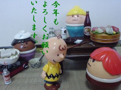 あけましておめでとうございます~本年もがたがたどたばたいたしますが、よろしくお願いいたします。m(__)mまずはチョコよりご挨拶。今年ものびのびいきまっせ~ヘ(__ヘ)☆\(^^;)なーんで、挨拶でそんな?_・)ぷっまあ、シャキーン(`´)シャキッっとしてていいか?改めまして。ちょこっと笑いたくなったら、または疲れたときに、_・)ぷっ「相変わらず、この家はおばかだねー」と笑いに来てください。このうちよりはましだっぺな、と思うと、救いになるかも?(え?ならない?)彼はこれをきると、固まる。。。。基本的に洋服が嫌いだから?えへへへ。(^^ゞいえいえ、洋服は嫌いでもこんなにかたまらない。なぜか?おととし、大慌てで買いに行ったらサイズ切れで・・・・・去年は、売っていたのに、うっかりうちにあるのが小さいのを思い出さなかった。(°◇°)~ガーンなので、伸縮性のない正装姿。ご挨拶だけ済んだら、脱ぎました。あはははは。さーて、お節も、お雑煮も我が家にはないので、実家に行ってこようっと。1日2日と、両方の実家にそれぞれ行くのが我が家の決まり。10年以上主婦してても、お重一つ我が家にはない!これでいいのか?それでいいのか?もちろんろん!これでいいのだ!!!!!(^○^)いいのか・・・・いいのか・・・・・栗きんとん一つ作れない。来年こそはなます?だけでもやろうかな。あれ大好きなんだもーん。えへへへ。それでは今年も張り切っていってみよ~♪(^o^)/~~~