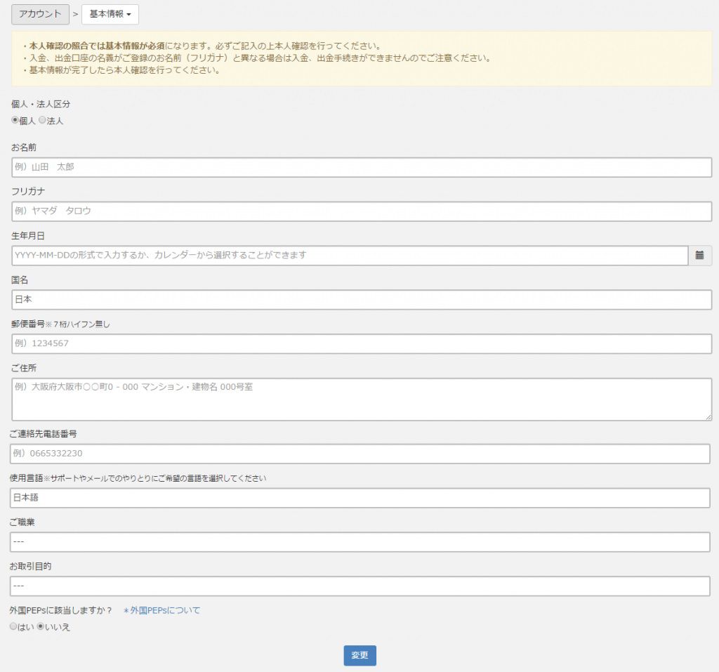 2. 必要情報を入力し、変更をクリック。基本情報入力はこれで完了!