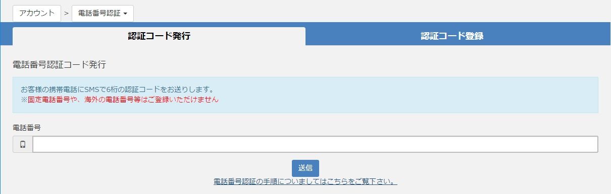 3. すぐに携帯電話のSMSに認証コードの連絡がきますので、入力して電話認証完了です。
