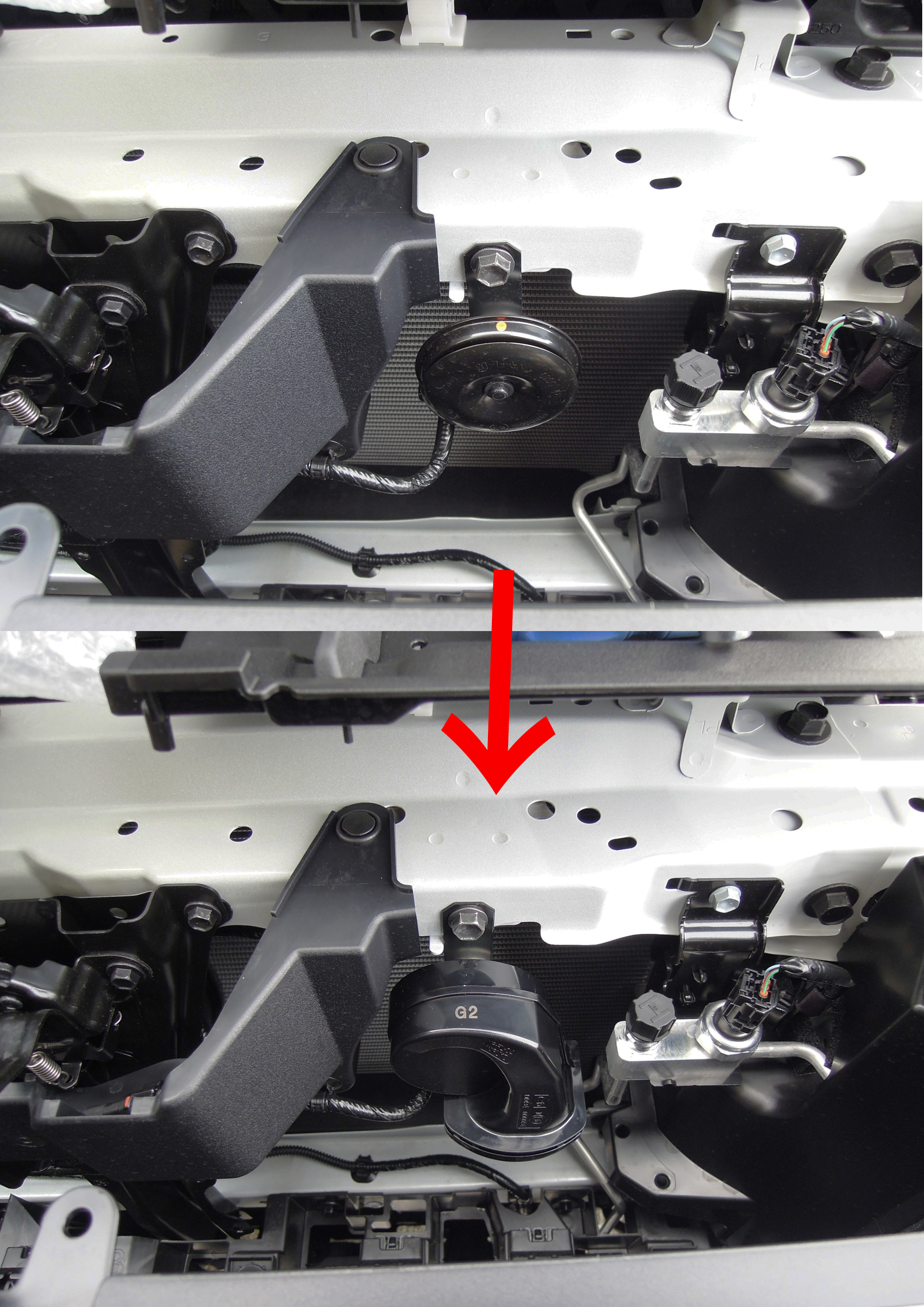 ボンネットを開け、パネルを外して ステーのネジを緩め、カプラーを抜いて差し替えるだけの作業です。 10分かかるかかからないかくらいで完了、素人でも簡単にできる交換作業でした!