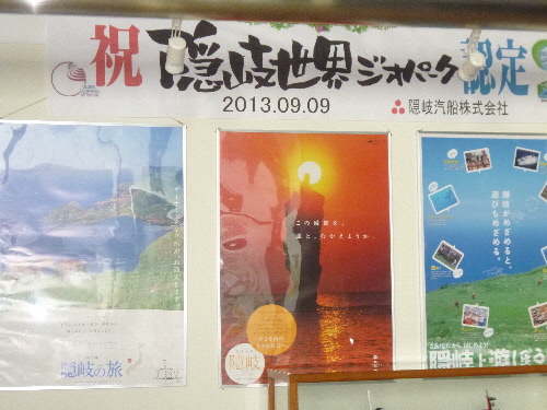 延原時行歌集「命輝く」 (第766回) 「復活の家出発進行ー感謝無限の旅一歩一歩」(164-4)しあわせ印の歌、復活二面の歌、昨夜推敲の歌、昨日仕込みの歌、御名の歌、誤訳恐ろしの歌、訪問リハビリの歌、在す方の歌、燃ゆる仕事の歌、営々苦心の歌、彫琢の歌、祝福の歌、昨日安楽の歌 (2013年11月1-8日) 11月4日 燃ゆる仕事の歌六首 引退後我が東西研フル回転Oxfordに講演Common Good賞受く(備考:Common Good Award第九回国際ホワイトヘッド学会(於Krakow, Poland)にてIPO(International Process Network)会長Adam Scarfe博士より授与さる。受賞の壇上にて何故に我がとの歌詠うも、再度にわたりプロセス学の哲学的生涯を証する最高の章なりとの説明有り、誠恐縮の至りなり。碩学お二方Lewis FordおよびDavid Ray Griffinとの共同受賞なりき。Oxfordに招待され講義をなしたる幸いに加ふるにこれ在り、本年我まことに驚きたり) 何よりも仕事燃ゆるぞ命なり妻の怪我あり看護燃ゆるも さてもさて東西研と妻看護燃ゆる仕事の両車輪佳し 両車輪近き神本寛き神二著にあらはれ燃ゆるや燃ゆる ここからよ我が学問の地球展静々と行く深々と生く (備考:これ年初に歌ひたる如く「地球大学形成」の成就なり。夏秋に至りて現れたるよ) この秋やしみじみと享く御心の降り注ぎたる我が身我が時 (備考:この秋既に詠ひし一首なり) 11月5日 営々苦心の歌四首 この度や受賞に際し我知りぬ如何に拙稿読まる多しか (備考:英文拙稿四十地球中でオンライン閲読給はるる如し、感謝無尽ぞ) 営々と書き綴りたる文なべて地球登録成せる世の幸 (備考:コンピュータ時代の地球学術の幸なり) 園にては妹背修練実にも幸朗々のあと邦訳苦心も (備考:「ノーちゃん、ええ線行っとるやんか」) 秋の夜に第二章をば彫琢す主の祈り実に不思議なる哉(備考:『21世紀文明形成の神学ーー神のエコゾイックスに向けて』第一部第二章「御名を崇めさせ給えーー主の祈りの不思議」なり) 今年正月の小さな旅「隠岐の島」は今回3回目、前回の「境港」をあとにして、「隠岐」の「島前」(どうぜん)に向かいます。穏やかな凪の境港とはいくらか船の揺れも出てきたものの、3時間近い船旅もゆったりとした船内で、たびたび甲板に出ては、広い大きな海を眺めているうちに、途中の港「知夫村」の「来居港」に着岸しました。 冒頭の「隠岐観光マップ」にあるように、「島前」の隣に「島後」(どうご)<隠岐の島町>があります。延原先生の叔父さんが戦後「島後」にわたられ、そこでの働きを一冊の書物『ふるさとの森づくりー隠岐・布施村から都市への呼びかけ』(清文社)にまとめておられます。著者の山口貞美さんは、その村の教育長や村長さんとしても活躍され、隠岐観光協会の会長さんなど歴任されています。団体旅行のため、残念ながら今回はお会いできませんでしたが、延原先生にも似て、なかなかの魅力的な御方のようですョ。だいぶんご高齢でしょうが。 御覧のように、この小さな港にも「水木プロ」の大きな作品が描かれています。 水木作品は今「隠岐の島」へも進出しているようです。ここから今回の旅の目的地「西ノ島町」の「別府港」までは、そう遠くはありません。凪の海に浮かぶ島々を愛でながら、ゆったりと・・・。 「付記」 友人からの賀状の中にひとつ「お知らせ」がありますので、ここにメモしておきます。ひょんなことから20年程前より御友誼をいただいている北陸学院大学の金森俊朗先生の賀状ですが、今週1月9日午後3時、Eテレで先生の御講義の全国放送があるそうです(暮れに放送の再放送)。先生は、3月にはスペイン各地での講演・授業もつづくようです。<会ってゆっくり語りたい>とメモしてくださいましたが、数年前には神戸での御講演の見えられました。。NHK・Eテレは、今年も元日夜の恒例のウイーンから衛星放送「ニューイヤーコンサート」を楽しみましたが、昨夜も、NHK交響楽団の定期演奏ーベートーベン三昧でした・・・。