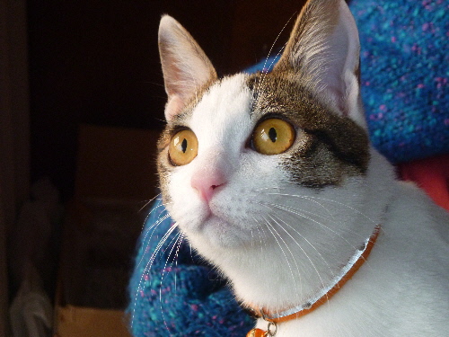 延原時行歌集「命輝く」 (第761回) 「復活の家出発進行ー感謝無限の旅一歩一歩」(193-7)今日の歌、驚きぬの歌、箴言介護術の歌、新著発想の歌、哀悼の歌、小さき希望の歌、風と陽光の歌、にこやかにの歌、クレアモント便りの歌、次ぞの歌、今日の思ひの歌、沈思一時の歌、驚きぬの歌、華やぎへの歌、我が学の歌、今日の日の歌、感謝無尽の歌、祈り聴かるるの歌、秋の日楽しの歌 (2013年10月19-31日) 10月27日 華やぎへの歌三首 主よ汝(なれ)の御働きのぞ器なり我らの悲惨身におびし事 Shu yo nare no Mihataraki no zo utsuwa nari warera no hisan mi ni obishi koto Lord, I came to know: It's the vessel of THINE OPUS Manifest here-now That we bear in our bodies Miseries and agonies 桃山に寄せし拙稿遥かなるBAMBINO時代華やぎ産むや(備考:拙稿「建学の精神をめぐる三つの省察ーー至誠心の神学より見た自由と愛」付論I: 説教「RE-MISSIO PECCATORUM(罪人達の赦し即再派遣)」[1966年];付論II: 詩「ペテロ」[1968年]のことなり) 悲惨をぞ身に帯ぶることなきままに人如何にして御苦しみ知らむ hisan o zo mi ni oburu koto naki mamani hito ikanishite Mikurushimi shiran Without bearing Miseries and agonies In our own bodies How can we come to know, Lord THINE OPUS of suffering? 10月28日 我が学の歌三首 この地上誰一人とて言はぬ学書き来りしも幾星霜や 二十一世紀文明形成の神学とぞや今称すなり 何時の日ぞ我この学を始めしは天啓の時"RE-MISSIO PECCATORUM" (備考:『BAMBINO』第五号、1966年11月12日なりし) この春やすみ、孫の宅の幼い猫が、一家あげて我が家に来訪した時の一部始終は、ブログでお知らせした通りです。猫ちゃんは我が家で痙攣をおこして、急遽近くの動物病院で診察し、いのちびろいをいたしました。数日間の入院となりましたが、元気を回復して一家の許に帰っていきました。その後、こねこちゃんーー「みみちゃん」(なぜかわたしの命名で)--は、すくすくと育ち、姿かたちも美しくなって、今回の来訪となりました。(孫たちの成長ぶりにも圧倒されてしまいますが、「みみちゃん」の美しさには驚きました)。我が家にはいまも、高齢の一羽の「文鳥」 がいて、「みみちゃん」に襲われないか、案じておりました。猫の目は、鳥に睨みを利かせて光っていますが、おかげさまで、いまのところ大丈夫です。本日は予定を変更して、「みみちゃん騒動の巻」として、数枚並べておきます。