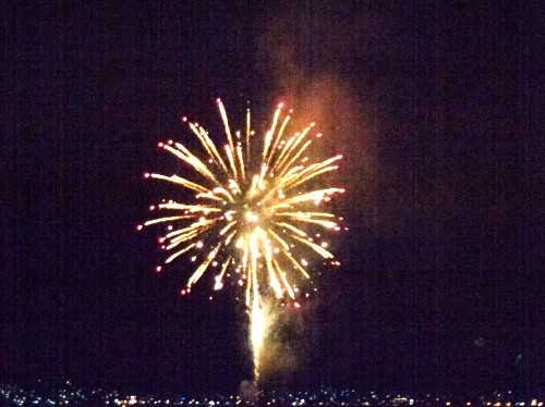 昨日の夜の湖上打ち上げ花火を湊側の岸辺から妻と一緒に芝生の上に腰かけて見てきました。以前とは花火の形が大分変ったような気がします。写真を撮る技術がないので綺麗には映っていませんが・・・。
