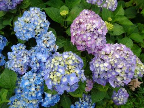 一日中、日が当たっていると枯れてしまいそうですが、夕立の雨などが降ると生き生きとした感じになります。 このほかにアジサイは4本ありますが、額アジサイ、白アジサイ、小玉アジサイ、柏葉アジサイです。 去年の秋アジサイが通路に出ていたので短く刈り込んだのですが、また同じように大きくなってしまって大変です。