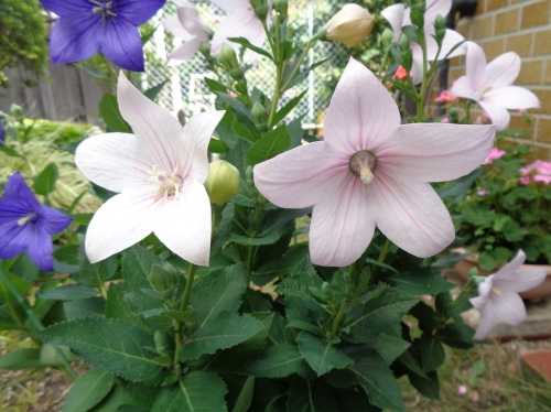 同じ植木鉢に植えてありますが、開花の時期が違って白の方が紫より少し早く咲き始めたので、咲き揃ったというわけにはいきませんでした。 昔、山の中にキキョウが咲いていて鎌で切り取って家へ持ってきたことがあります。 キキョウは秋の七草ですね。初秋ということでしょうか。
