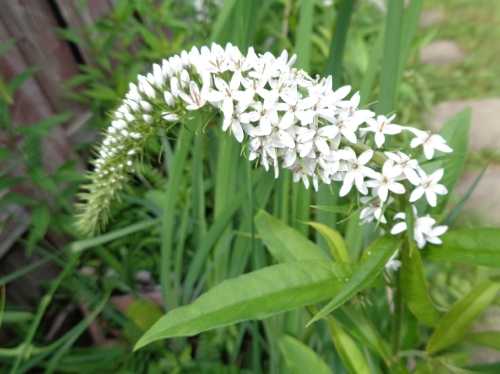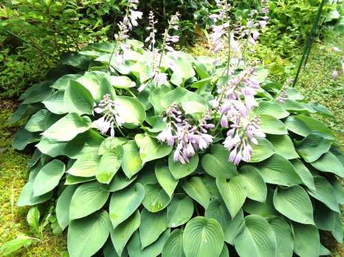 花よりも葉の多さが強調されている植物です。梅雨のころ大きく茂ります。とても強い花で、どんな日陰のような場所からも毎年芽を出し花を咲かせます。 我が家ではホスタと呼んだりギボウシ(擬宝珠)と呼んだりしています。全国的にも色々な違った呼び方があるようです。庭の色々な所に出来ています。1本、1本が別な花ではなく全体で大きな固まりになっています。葉の形も、色はもちろん緑系ですが、濃さも模様もそれぞれ違います。ここには載っていませんが、畑の傍にあるギボウシは葉に白い筋が入った特殊な模様が付いています。