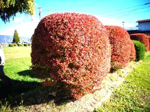 湊地区の湖畔公園は昨年、半分が駐車場になってしまいましたが、残る半分はドウダンツツジの垣根に囲まれています。 いま、そのツツジの垣根が赤く紅葉してきれいです。春には白い鈴蘭のような可愛らしい花をたくさん付けます。これらのドウダンツツジは大きな木は高さが2メートルもあります。