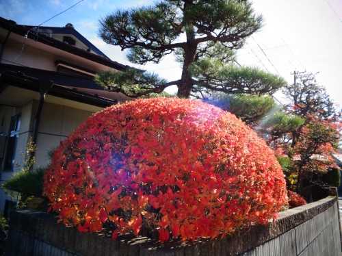 前庭のドウダンツツジが紅葉しています。通り道沿いのツツジなので毎年、植木屋さんに確り刈り込んでくれるようお願いをしています。