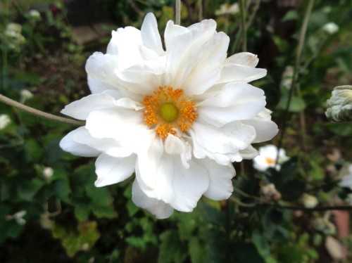 秋明菊が雨が降ったり、寒くなったりして、散り始めています。この秋明菊は八重の花ですが、一重の方がすっきりしてきれいだと思います。また去年まではもっと丈が高かったような気がするのですが、低いところに咲いて驚いています。数年前までは、薄紫の花があったのですが、消えてしまいました。色々変わるものですね。 秋明菊は中国原産で室町時代に渡来し、京都の貴船地方に繁殖し全国に広がったそうです。それで貴船菊とも呼ばれているようです。 また日本からヨーロッパに渡り、品種改良が行われ、ジャパニーズ・アネモネ(Japanese anemone)と呼ばれているようです。