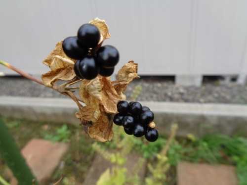 八月に咲いた檜扇(ヒオウギ・一番下の画像)の花の下にあった黄緑色の苞(ほう)が割れて、中から光沢のある黒い射干玉(ぬばたま)と言われる実が出てきました。 ぬばたまは、本当に真っ黒な玉です。短歌ではその種子の色から「黒」や、黒を連想させる「ぬばたまの」という枕詞が用いられます。例えば「夜」「髪」「夢」「月」「寝」「夕」などという言葉を修飾します。
