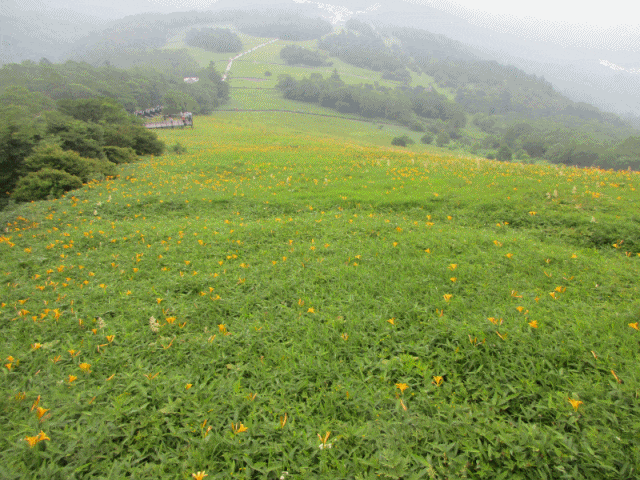 今日は曇り空の朝そういえば涼しくなると言ってたようなしかしその予報は外れました太陽照り付けるいいお天気に昨日と同じ35℃近くそれ以上に感じましたけどね外にいただけで汗が噴き出ましたから日曜日の続き1445段の階段を登ること25分標高1,582m日光霧降高原 キスゲ平園地小丸山展望台へ心地よい風が吹いて気持ちがいい下界とは気温が10℃近く違うでしょうねさすがにこの距離を歩くと汗が吹き出します涼みに来たのに汗かいてるって本末転倒ですねお天気が良く空気が澄んでいれば太平洋富士山スカイツリーまで見えるそうです(HPより)今回の目的は階段を登りに来たのではなくニッコウキスゲを見るため途中の展望台から見ごろを迎えてましたよお天気が残念でしたけど(クリックすると大きな画像が見られます)登ったら降りなくちゃいけないわけで降りるほうが大変ですよねいろんな花を探して降りてきましたレストハウスでソフトクリームと行きたかったですが頂きませんでした