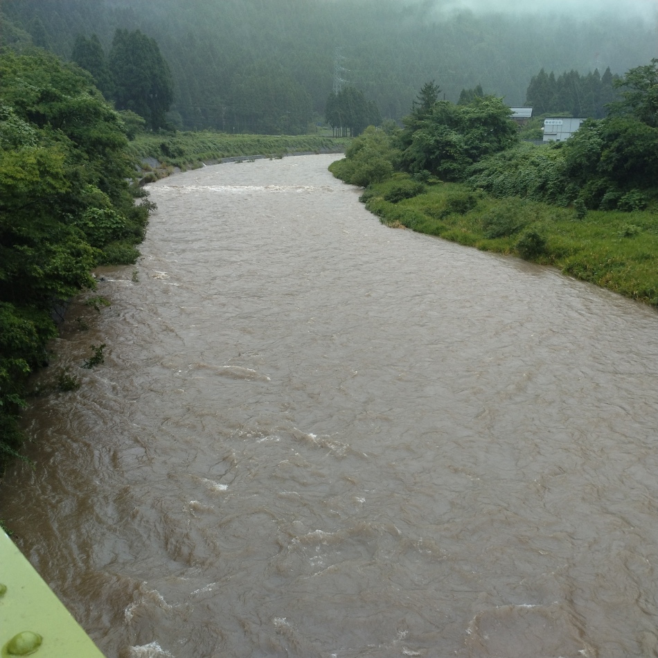 画像は6月23日 12:00の上新橋上下 水位は約1m高解禁前からの減水続きで、厳しいとか小型が多い情報もあった足羽川。放流はやや遅めではあるが、上手くいった足羽川この2年、稚鮎値上がりの連続で、放流量を落とす漁協が散在する中、6トンの目標をはるかに上回る6.8t(6800kg)を放流した足羽川解禁では大釣りも出来ていましたし、雨と水量があれば、川が生き返る自信はありました。待ちに待ったまとまった雨。23日の未明は大雨、午前は小降りになり、中流でほぼ100cm増水。これは大雨予報がありながらも丁度良い増水。火曜日には群れ鮎はシャッフルされ、十分に釣り再開のイメージがありました。ところが午後3時4時には大雨が追加になりました。それも福井では足羽川中流の美山アメダスが最高の降水量。2時間で60mmの大雨が降り、水位は70cm台から再び急上昇!16:00現在の中流水位計は150cmを指しており、それも勢いよく上昇中です。何しろ、大雨増水の5月28日以降に放流した鮎が多く、足羽川の鮎にとって大半は初めての増水体験です。100cm増水で収束したかったが、かなりの濁りと水流で試練を与えます。この時期の鮎は下がらない!と言われますが、昔よりも濁りや砂が酷い河川になったので心配はしています。ともあれ水位の回復は早い川なので、週の前半には釣りが再開されるでしょう。増水後には近所の好ポイント「上新橋」周辺には鮎が溜まる感じだと思います。もちろん6.8tですから、各エリアが楽しみです。
