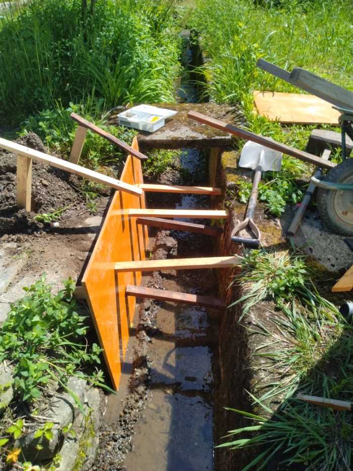今年、私、アウトドア小僧は、オトリ屋営業の他に足羽川管内のオトリ屋へ、朝方鮎の配送を行う仕事が増えました。配達するのは、火・木・土・日の週4回ですが、土日の忙しい日の朝方、店に居れない時間が生じます。漁協職員ですので、仕事が多くあるのは止むを得ませんが、お客様にはご迷惑をおかけすることもあると思います。今、そのオトリ鮎配送施設を急ぎ足で、作業しやすいように構築中で、自分のオトリ屋のことは後回しにしていたこともあります。初めてのことだから・・・と言い訳したいのですが、恥ずかしながら、水が豊富な場所に立地したわけではないので、調整すべきことが多すぎます。井戸水がメインですが、他に用水路から水を取るのに、水中ポンプを仕掛けます。用水路の側面が昔の石組のルートなため、水中ポンプを仕掛けるために、ダムにすると水が横の壁からどんどん漏れます。それを防止するために、自前でコンクリート護岸工事を進めています。それがかなり上流まで進み、工事の疲労で自分の心が折れていきます。もう解禁間近、6月13日には大量の鮎を仕入れなくてはいけません。まだ安定した水の確保を確定したわけでないので、水槽の中の循環システムを確定していません。素人が配管やポンプの容量の微調整を進める日々です。オトリ屋としても忙しい状態に突入するので、何とも!体がいくつも欲しいところです。