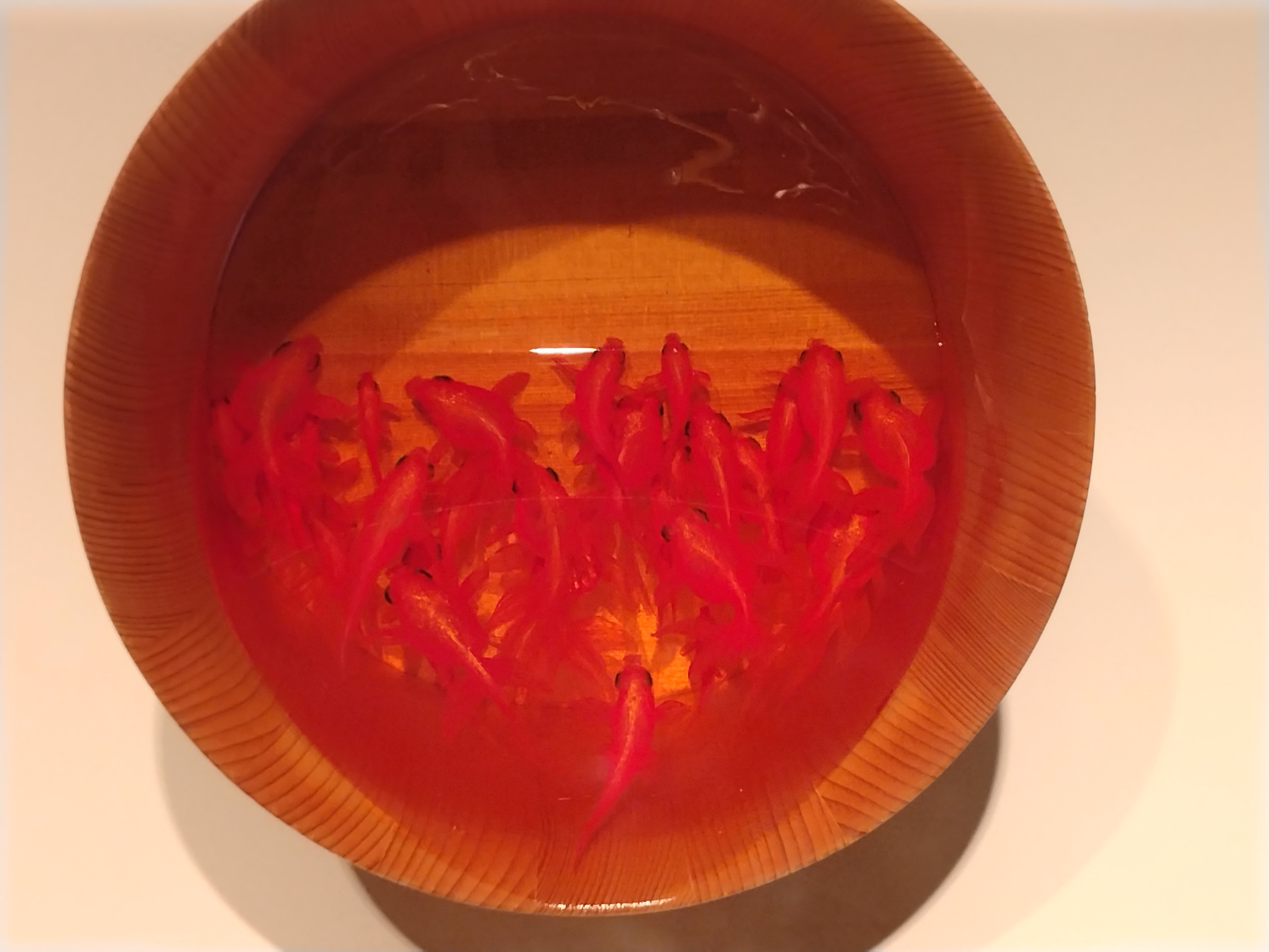 7月28日まで福井市美術館で開催されていた、「金魚絵師」深堀隆介展を見に行った。これでも若い頃?は美術工芸に大いに興味があって、わりと見に行っている方だったが、ここ何年かは行ったことが無かった。妻へ見に行くか!と声かけると、この深堀展には行きたかったようだ。創作に行き詰って、金魚を題材として描くことにたどり着くまで、苦しみがあったと思う。私も魚の「渓流魚」メインでの創作を続けていますが、試行錯誤が長く続くとそれは苦しい。でも深堀さんが陥った深い苦しみには比較できるものではない。その深みから見事に生還されたことが、「金魚絵師」として世界的に認められた道筋につながったと思う。今、私は、楽しみながら魚を描いたり作ったり出来ている。自分だけのオリジナル技法?もあると思う。でもそれはちょっと努力すれば掴めるものだろう。だけど、同じ魚の世界で、これだけ苦しみを乗り越え、自己研鑽を継続している深堀さんには近づけない。素晴らしいと思うしかない。久しぶりに行った美術展でしたが、64歳の年金をもらう年になった自分は、このままで良いとしか思えない。ハングリー精神も足りないのだ。