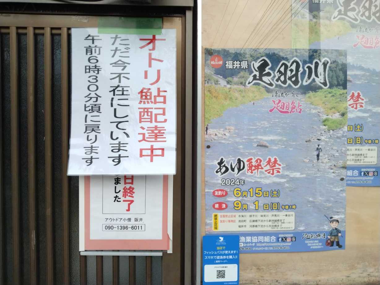 オトリ施設は近いのですが、ここでは釣り人個々への販売はいたしておりません。ここは井戸水=地下水を利用しています。私にとっての2024年鮎の解禁日は、オトリ鮎の配送を担当する業務が増えました。施設は福井市品ケ瀬町にあり、私が事実上の管理人になっています。6月13日に鮎を仕入れ、6月14日に足羽川管内のオトリ屋(作助さんは別)へ鮎を届けました。この施設の建設に主に携わったのが私で、水槽購入、レイアウト、配管後にいろいろ微調整を担当していました。足羽川の友釣り解禁の裏方を支える日々でした。ですので17年目を迎えるアウトドア小僧のオトリ屋の営業のことは、後手後手になっており、お客様サービスとしては手を抜いていたと言われても仕方がありません。オトリの配送は、週4日、火・木・土・日に行い。『午前5時から午前6時半』を留守にすることになります。15日の解禁日分は、14日に事前配達でOKでしたが、16日(日)は早速オトリ配送を早朝に行ってからのオトリ屋営業でした。今まで平日午前9時半以降はセルフサービスにしていた店でありますが、早朝も不在になる日があることで、サービスが務まるか、お客様は満足できるのか疑問なところです。足羽川の中央部にあるオトリ屋として無くすわけにはいかないとは思います。ただただ、人を雇わないからサービスが出来ていないと言われれば、その通りです。常連様の釣り人に支えられ、孤軍奮闘する営業ですが、これからもよろしくお願いいたします。