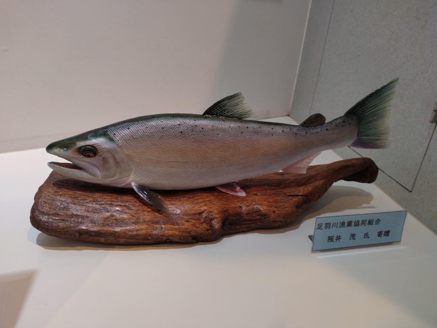 サクラマス65cmフィギュアがこのほど、福井県内水面総合センターの展示ホールに常設展示されました。これは大型フィギュアを作るだけ作って、保管するには大きすぎて我が家では持て余す状況なので、昨年にセンター長へ展示のお願いをして、「足羽川漁業協同組合 阪井茂 寄贈」扱いとして受け取っていただきました。福井県はサクラマスの聖地として、内水面関連も力を入れており、展示ホールには九頭竜川で釣り上げられた70cm越えのサクラマスの剝製も並んでいます。やはり家でほこりをかぶるより、公の場で見ていただいた方が良いです。ちなみに福井県内水面総合センターは月曜が休館で、土日も展示コーナーは見学出来ます。それも無料です。内水面の魚たちが大型水槽で見れますので、ミニ水族館のようです。鮎は1月でも群れで泳いでいます。そしてセンターのすぐ裏は九頭竜川が流れていて、サクラマスのポイントが並びます。私も九頭竜川でサクラを狙ったころは、センターの近くでよく釣りました。