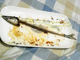 昨日の晩酌は生サンマ。アブラがのっている生サンマ。私ねぇ・・本当にさかな大好きなんです。特にサンマの食べ方は・・自信あり。ハラワタまで・・・すべて食べます。食べ終わったサンマ・・・ほれ、骨だけです。ハラワタのまわりの小骨もすべてたいらげます。この画像は・・正真正銘・・食べ終わったあとのサンマです。キレイに見せるため・・・残骸を処理していません。食べ終わってすぐのサンマちゃん。もし・・この世に・・・サンマ喰い検定があったとしたら・・初段になる自信はありますね。どうでもいいことなんですが・・・妻はサカナに対して・・あんまり興味がないので・・・焼いたサンマをお皿に乗せるとき・・・頭を右側に向けて乗せるトキがあります。まあ・・サンマに限らず・・・コレガユルセナイ。サンマに限らず・・・焼いたサカナをお皿に盛りつけるときは・・頭が左側なのです。どうでもイイコトかもしれませんが・・・まだ注意はしたことないのですが・・・焼きサカナの「頭右向き」だけはやめてほしいです。必ず・・・左に頭を置きましょう・・・どうでもいいことかもしれませんが・・・