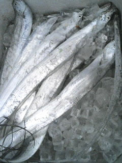 昨日・・午後3時のことだ。浜松・舞阪漁港の知り合いから・・「もう、今年最後となる太刀魚が入った。すぐに(舞阪漁港)来い」と連絡あり。潮の流れの関係で・・舞阪漁港に太刀魚が揚がるのは・・今年は最後ということらしい。えぇぇ。すぐに車を走らせましたよ。うちから・・30分かけて舞阪漁港まで・・んで・・、舞阪漁港に揚がった・・・太刀魚です。今・・スーパーなんかでは・・このくらいのサイズの太刀魚・・1尾650円から850円くらいしますよ。私は毎日のように・・スーパーを覗いているので知っているのぢゃ。切り身でも・・けっこうなイイお値段していたもんなぁ・・・昨日の太刀魚のお値段・・・これだけで・・・600円。1尾600円ではないよ・・これだけ入って・・600円。正直言うと・・途中親戚に4尾お裾分けしてきたので・・実際には・・もっと入ってたったの600円。金利手数料はくめっちがご負担・・そんな感じのお値段。さすがにこのお値段は・・「ジャパネットたかた」さんでも無理であろう・・ウヒヒ。さてさて・・昨日の晩ご飯は・・太刀魚の塩焼き太刀魚のお刺身太刀魚の塩焼きは・・今の時季って・・お腹に卵をかかえているんだよね。塩焼きの身の中には・・ピンク色のふっくら卵・・・形はタラコのようだけど・・・タラコをもっと柔らかく・・そしてプチプチ感というより、フワッとした卵でした・・・太刀魚の卵なんて・・食べたことないでしょ???刺身がねぇ・・もうコリコリなのよ。まるで・・・ミル貝を思わせるような・・コリコリ。白身のさかなでいうと、鯛とも違う・・スズキともちがう・・鰺やヒラマサ、ブリでもない・・カワハギでもない・・ぢゃあ・・・ナニか???と言われれば・・・「太刀魚」なんですよね・・コリコリというより・・ゴリゴリというような新鮮なお刺身でした。実を言いますと・・・昨日・・知り合いから・・しかも午前中に・・ウナギの白焼きをいただいていたんです。今夜の晩ご飯はウナギだね・・と言っていたのですが、午後3時過ぎ・・「今、漁船が帰ってきた・・すぐに太刀魚を取りに来い」というので、急遽・・・晩ご飯が変更されたほどでした。取れたて・・・・の太刀魚の塩焼きとお刺身・・・贅沢。合わせた酒は・・・岐阜県中津川の「三千櫻」この酒は社長のヤマダさんがアロハシャツ着て、自ら・・私のお店に持ってきてくれたもの。水揚げされたばかりの太刀魚の・・しかも・・・ゴリゴリとするような太刀魚のお刺身と「三千櫻」・・とってもおいしゅうございました。しかし・・・ウナギの白焼きが・・・後回しにされる・・・それは贅沢ですね。さらに実を言うと・・昨日・・・の朝・・冷凍の鮎も頂いているんだよね・・・なんて・・リッチな久米家の食卓。今夜はウナギと・・鮎を解凍して天ぷらか、フライにしようと思ってます。うちでは・・ウナギのタレは・・自分で作ります。まあ、味醂と醤油と砂糖を入れて・・煮染めただけですけどね・・鮎は大人が・・親指とお母さん指をおもいきり広げたくらいの大きさ。塩焼きでは・・もったいないくらい・・本日・・ウナギと鮎の天ぷら・・・どう・・うちに遊びに来る????