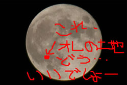 私、くめっち・・月の土地を千坪ほど持ってますが・・それが何か??お隣さんには・・あのうどんマンと、たけちゃんが・・・おります。ええっ、月の土地ではご近所同士です。