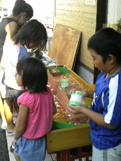 本日より・・・二日間、当店ではお子様向けのイベント、「流れるスーパーボールすくい大会」を開催します。このイベント・・9月20日に突然アイデアが「ふっ」と沸いてきて・・んで・・・速攻でチラシを書いて・・新聞折り込みが9月22日の土曜日朝刊・・というなんとも突発性イベント。普通・・イベントというと・・準備段階に時間をかけて・・「段取り8割、当日2割」と言われているが・・まあ・・本当に急にイベントを思い付いたのだから・・しょうがない。さて・・昨日は近所の小学生を呼んで・・・プレイベント。流れるスーパーボールすくい・・・を無料でやらせてあげたのだ。こういうのって・・・本当に子供達好きだよねぇ。昨日なんか・・午後の2時から夕方5時まで・・近所の子供達・・・ずぅぅぅっっっっと遊んでいたもんね。そしたら・・・それを見て・・・別のお客さんが寄ってくるんだよね。昨日は・・プレオープンで・・お金は取らなかったんだけど・・・全然知らないお客様なんだけど・・付き添いの父親がどうしてもうちの子供にやらせて欲しい・・と100円玉を二つ。お父さんと来たちっちゃんな子が・・・嬉しそうに「スーパーボールすくい」をやってくれました。なんか・・・・お父さんのほうが・・嬉しそうだったなぁ・・・えっ・・酒屋が・・イベントで・・・子供集めて・・意味があるのか?って・・・はっきり言って・・・儲けるためのイベントではないですよ。1回100円・・正直言って・・・小学生だけしか来ないかもしれません。でも・・・このイベントの意味って・・・違うんだよなぁ・・子供達の笑顔を見たいから・・・なんですね。子供達の笑顔って・・すごい・・パワーがあるんだよ。それに・・店頭で子供達が10人もいるのを想像してごらんなさいよ。「なんだ・・なんだ???」って大人は覗きたくなりますよ。まあ・・別にそれが目的ではないけどね。子供達がニコニコと遊んでくれる・・それが一番嬉しいですね。もしかしたら・・商売人としては・・突然のイベント・・しかも三日前に考えた・・・そんなのイベントじゃない・・と思われる方もいるかもしれません。「もっと計画的に」と言うお叱りもあるかもしれませんが・・ しょうがないじゃん・・突然にやりたくなったんだから・・・子供達が家に帰って・・・嬉しそうに報告してくれる・・それだけでいいんです。大村屋酒店・・23日、24日は・・「流れるスーパーボールすくい」大会。たくさん・・・すくってね。・・・・あっ・・・追伸・・平成19年度の三方原ポテトチップ・・ラスト50ケースとなりました。あと・・750袋で・・2007、三方原ポテトチップは終了いたします