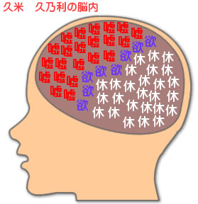 おいらね・・・ニュース番組以外・・あんまりテレビというものを見ないから・・世間より情報が遅れているかもしれないんだけど・・昨日見ていたテレビの情報の中に・・「脳内メーカー」というものがあった。今頃???情報・・遅っ・・・と思われる方もいるかもしれないが・・まあ、初めてそのようなものを知ったのだ。そう言えば・・大手メーカーの清涼飲料水のコマーシャルでつかわれていたなぁ・・おいら・・・あまり・・こういうのって「好き」ではないが・・・妻が「わっ、おもしろそ。おもしろそ~。私の名前でやってみたい」・・と、のたうちまわるので・・・早速、ネット検索してそのページへ行ってきました。脳内メーカー名前を入れるだけなので・・・簡単だよ。でも・・・名前を打ち込むだけで・・・なぜこんな診断がされるのかは・・・解らないが・・まあ・・・「久米 久乃利」でやってみたんだ。それが・・・これ。なんと・・「ウソ」と「欲」と「休み」が大量に・・・これには・・・笑ってしまった。ある意味・・当たっている。ズバリ・・ビンゴ。特に・・「休み」は今すぐ欲しい・・もんね。はぁ・・・笑った・・・・と思っていたのだよ。「まてよ・・久米 久乃利ではなくて・・久米久乃利でやったらどうなるか?」と思ったんだね・・名字と名前のスペースをとってみたら・・・久米久乃利としての「脳内メーカー」がこれ・・こっちのほうがある意味・・・シリアスです。「謎」を「食」がオブラートして・・・さらに・・・「秘」と「友」で囲まれている。なんか・・・こっのほうの診断は・・ちょっと考えちゃったなぁ・・・別にやましいことはしていないが・・・まあ、あまり真剣にならずにハナシのタネくらいにやってみて・・脳内メーカーを追伸・・・「くめ ひさのり」でやってみた・・もうナニも言いたくありません。