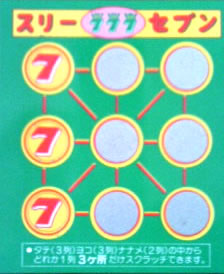 縦、横、ナナメのどれか1列直線3個をスクラッチしてください。777が出たら・・あたりです。あたりが出たら・・・なにかあるかも?左、縦1列とか・・真ん中、横1列というふうに・・あたりを探してみて・・たくさんのご応募お待ちしています。