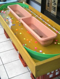 祭りだ、祭りだ。。お月見祭り・・・流れるお月様をすくっちゃえ。第1回大村屋酒店「流れるスーパーボールすくい」大会流れるスーパーボール・・・、あなたはいくつ・・すくえるか?1回100円でポイ1個。1個のポイで・・スーパーボールを5個すくえたら・・対戦型カーレースゲーム・・プレゼントスーパーボールすくい・・コレ・・簡単に見えるでしょ・・でも・・流れるスーパーボールってなかなかすくえないよ。1個のポイで・・・7個のスーパーボールがすくえたら・・上のカーレースゲーム・・・プレゼント。挑戦者・・求む。9月22日(土)、23日(日)、24日(月)は大村屋酒店へいそげ。息子が言うには・・・「金魚すくい」よりも・・難しいと言った。