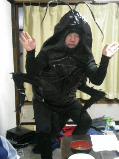 ゴキブリ・パート2このブログは・・ひとつ前のと併せて読むと・・さらに・・くめっちのバカさが解ります。さてさて・・・青山で開催された仮装パーティーに・・ゴキブリ男で参加したくめっち・・ある女性・・まあ、この女性とは・・・かなり仲良くおしゃべり出来る女性なのだが・・推定年齢45歳くらい・・・愛知県は・・半田市の女社長だ・・・その彼女が・・・・ゴキブリに扮した私の顔をじぃっと見て・・・上の写真のように・・・ゴキブリ男・・・顔の一部だけが出ている・・・「くめっちってさあ・・顔の中心部のパーツはいいよねぇ。顔の一部のパーツだけを見たら・・イイ男だよ。全体を見るとたいしたことナイけど・・・そうやって・・顔の一部だけ・・だしていたら・・・いい男だよ。モテル顔だわ・・」げっ・・ということは・・顔の中心部だけをこのようにして露出していたら・・・イイ男なのか???全体では・・・おデブで見られた顔ではナイけれど・・・顔の中心部の一部のパーツだけなら・・いい男なのか???はっ・・そういえば・・昔・・・ツレの奥様からも・・・「久米君って・・痩せて、ほっぺたの肉落とせば・・・・いい男だよねぇ」と真剣に言われたことがある・・・くぅ・・・こうなりゃ・・まず・・ほっぺたの肉を落とし・・二重あごを痩せれば・・・モテモテのイイ男になるのだろうか・・・半田の女社長が言った・・・「くめっちて・・顔の中心部の一部のパーツだけを見れば・・・イイ男だよね」くっそお・・・こうなりゃ・・・お腹の肉よりも・・・まず・・顔をヤセさせよう。みんな・・くめっちがいい男になるか・・・こうご期待。あっ・・・先日のコンパニオンさんからも言われた・・「おにいさん・・目は優しそうだから・・・痩せれば・・超イイ男かも??」マジ??マジで・・・・痩せたら・・・イイ男??
