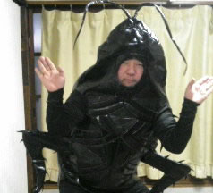 仮装パーティーのときの画像が無かったので・・・朝・・・妻に撮影させました。こんな格好で・・・青山を歩いたのです。よく・・駆除されなかったよなぁ・・まあ・・子供のランドセルはご愛敬で・・