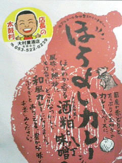 昨年12月から販売している地元浜松の酒蔵の酒粕を使ったカレー「ほろよいカレー」ぼちぼちと・・全国へ進出するようになりました。これは滋賀県でご商売されている方が・・・自分のお店のお便りの中で・・当店の「ほろよいカレー」を紹介してくださったのです。ありがたいことです。「ワインアドバイザーの食卓」というブログを書かれている麺多浪さんのところにも・・・この「ほろよいカレー」が紹介されています。ありがたいことです。この酒粕カレー・・酒粕を提供してくださった浜松の酒蔵「出世城・天神蔵」の売店でも販売をしてくださっていて・・・一昨日・・・土曜日・・・仕入れたいものがあったので・・この天神蔵へ遊びに行きましたところ・・売店担当の女性の方が・・「大村屋さん・・もう在庫がナイからまた1ケース持ってきてね」と注文が・・「どうですか?」とおたずねしたところ・・・「お客さんのほうが良く知ってますねぇ。やっぱりラジオの影響かなぁ。『コレ・・ラジオで紹介されたカレーだよねぇ』と行って買われていきますよ」本当にありがたいことです。地元・浜松の酒蔵の酒粕入りのカレー。「ほろよいカレー」当店のホームページからもご購入できますよ。