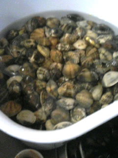 当店のお客さんより・・バケツいっぱい・・大量のあさりをいただいた。昨日の夜にもらったのだが・・「まだ砂を噛んでいるから・・一晩・・砂を吐かせろよ」と・・言われまして・・昨日からアサリの砂を吐かせてました。もう・・ぴゅーぴゅーとスゴイ勢いで・・アサリが水を吐いてます。けっこうな水の勢いなんですよ・・・んで・・一晩・・砂を吐かせた・・大量のそして大粒のアサリ。今夜は家族で・・アサリパーティー。まず・・アサリの定番・・酒蒸しでしょ。あと・・寄せ鍋の具材にもアサリを大量投入。中の具は・・アサリ、エビ・・お肉に白菜などなど。最初はアサリのおみそ汁にしようと思ったんだけど・・あまりにも大量で・・味噌汁では飲みきれないのだ・・たがら・・というわけではないが・・本日のおかずは・・アサリの酒蒸しアサリと魚介類の寄せ鍋。それでもまだ・・・アサリが残っている・・スパゲッティ・ボンゴレにしようか・・アサリの炊き込みご飯にしようか??あさりのお吸い物も・・・いいよねぇ。ねえねえ・・あさりの酒蒸し・・みんなのお宅はどんな酒蒸し??うちは・・シンプルに日本酒だけを大量に掛けるだけ。アサリの塩気があるから醤油もナニも入れない・・ただ日本酒のみを入れるアサリの酒蒸し。うちのお得意の居酒屋では・・・アサリ酒蒸しにも・・いろいろなバージョンがある。ニンニク、唐辛子をたっぷりと効かせた・・ペペロンチーネ風酒蒸し。キムチの素を入れた・・キムチ鍋風酒蒸し。バターを入れて・・バター酒蒸し。ごま油とラー油で中華風アサリの酒蒸しなどなど・・・こっちが好みを言えば・・好きな「アサリの酒蒸し」を作ってくれる。ペペロンチーネ風なんかも・・かなり美味しいね。アサリの味噌汁・・・八丁味噌でやると・・最高だよね・・でも・・これは・・一部の地域だけだろうなぁ・・八丁味噌赤だしのアサリの味噌汁なんて・・飲んだ後には・・最高の贅沢・・あとねぇ・・一度食べてみたいのが・・・深川丼・・なんでもアサリの味噌汁みたいなものを・・飯にざばぁと掛けただけのぶっかけ飯。まだこれ・・食べたことがナイ。深川丼は食べてみたいなぁ・・アサリってどうやって料理してもウマイよねぇ・・・しかし・・素朴な疑問。貝類・・・いろいろあるが・・・牡蠣は生で食べることが出来る・・アワビもお刺身に・・・出来る・・赤貝だって・・ミル貝だって・・お刺身や寿司ダネになる。アサリって・・生で食べられるの???煮たアサリのお寿司は知っているけど・・生のアサリのにぎり寿司ってあるのかなぁ?ダレか知っている人いない??アサリって生で食べられるの??生で食べても・・大丈夫なの?もし・・あるのなら・・・生のアサリのにぎり寿司を食べてみたい。