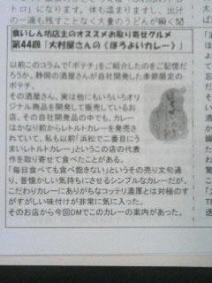 本日付けの日本テレビの「ニュース・リアルタイム」リアル・エンタメコーナーで・・大村屋酒店のカレーを紹介します・・・とディレクターの方から電話があったのだが・・電話も鳴らないし・・注文も入らない。本当に放映されました??浜松では見ることが出来ないので・・神奈川在住の姪っ子達に「見ておけ・・」と伝えておいたのだが・・「見てなかった」と報告あり。本当に・・当店のレトルトカレーが・・紹介されたの??日本テレビで・・・??誰か・・詳しい情報、目撃情報があったら・・教えてくれぇ。こっちでは見られないから・・なんとも言えないんだ。「見たよ・・」という情報が一件も寄せられない目撃情報・・・求む。2月12日付けの日本テレビ「ニュース・リアルタイム」の中でです・・