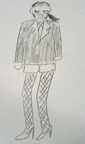 月曜日・・・夏休み家族旅行のとき・・ご飯を食べるために立ち寄ったガストで本当に見かけた男性です。トシヤとアキハの話をもとに目撃者でもあるくめっちが忠実に再現しました。ひとつ前の日記でも書きましたが・・・推定年齢50代光沢のある黒色系のシャツに金色のネクタイ。ジャケットは黒系の割といい素材のモノ。顔は熊のように色黒で・・眉毛が濃い。髪は少しパーマというかソバージュをあてたようなロン毛。ロン毛をポニーテールにしている。白のショートパンツというかホットパンツ編み目の大きい網タイツ。色は黒ヒールの高い白色のハイヒール。ヒールの高さは10センチ以上と思われる。出没場所は・・・愛知県内のガストあえて・・場所は細かく書きません。国道に面したガストです。しかし・・このおっさんが・・・・このブログを見ていたら・・・ドウナルノダロウ??