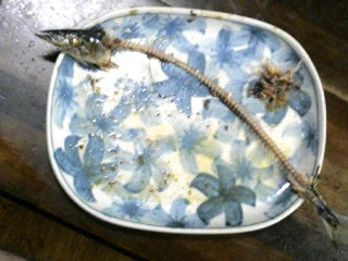 昨日の晩ご飯というか・・晩酌は・・・イワシの刺身とサンマ。サンマは・・・自分で焼きました。自慢ではないが・・・サンマを焼くの・・・かなり旨いぞ。皮はパリッと中はジューシィーでほくほくのサンマに焼き上げる。さて・・・そのサンマを食べ終わった姿がコレ。どう・・・キレイに食べるでしょ。しかもサンマ本体をひっくり返さず・・・ここまでキレイに食べます。サンマ食べ方検定・・・というものがあれば・・・・初段はいけるかと・・・だって・・お箸の国のくめっちだもの。サンマのはらわた・・・は必ず食べます。