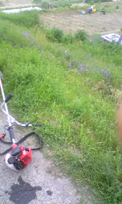今日は午後から雨の予報だったので、午前中で終了~。まだ、雨ふってませんが、作業的に終ったので、また、こんな時間ですが更新です。 まず、昨日の事を、立て看板取り付け作業が遅い時間までかかり、終了したのは、22時半。昼間は暑く、半袖で作業したのですが、夜はひんやりいい感じ。一緒に作業させて頂いた課長さん?よくわかりませんがが「この暗くなって、夜の匂いになるときが好きなんよ。」っとたしかに、ちょっとひんやりと、澄みきった空気ってのはわかる「いいですね。言われてみたらわかります。」「ブログにかくやろ?植木屋ひとりさん」ちょっとびっくり。ええ。ちゃっかり書かせて頂きました今後とも何かとよろしくですフィーリングでいいとか、わるいとかって多分そういうこと。季節で変る「夜の匂い」。。多分きらいな人は少ないと思う。 さてさて、今日の午前中はコチラ!草刈り前草刈り後。道ができた。そして、農作業。土をクワでたがやす。ココの土は本当にいい。野菜つくりには本当にいいと思う。野菜にいいということは。。木にも。花にも。絶対にイイ!ミミズもいっぱい、いたし。手で感触を確かめる。握ると固まる。崩すと乾いたようにパサパサ。覚えておこう。肥料に何を使ってるか?どれぐらい使用しているのか教えてもらった。もちろん、内緒!収穫アリ。今後、使っていこう。無農薬の土つくり勉強の場所はこちら。ちゃっかり作業代も頂く。その分はしっかり頑張りました先生方はたくさんいる。いろいろ教えてもらえそうだ~。よかった。よかった。それで、施主さんと帰宅すると、もと大工のじやんが頑張ってた。やるな~!じいやん背中もまがり、親指もないが、知恵と技術はある。スピードはもちろん、ない。施主さんがいいならそれでもちろん、いい。口も手もだす必要なし。それで、いいと思う。ひとりも一切手伝っていない。たぶん、それでいい。