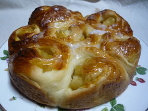 10月20日(水)曇夕方、我が家の稲荷様の前の木の剪定をする。少しずつ綺麗にしていかなければならない。この夏暑かったので木の伸びが良かったようだ。紅玉林檎が2袋もあるのでアップルパンを作ることにした。2個作った。