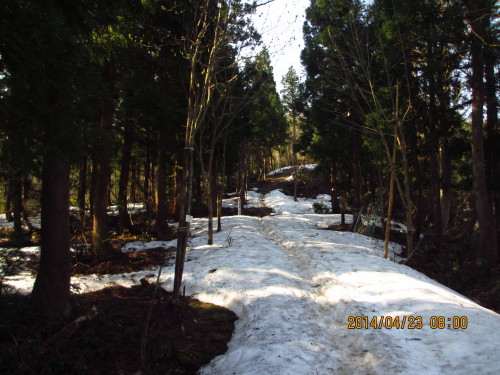 4月23日(水)晴れ登山口を入ると登山道にはまだ雪が残っていました。 イワウチワの群落 イワナシイワカガミカタクリシュンランショウジョウバカマイワウチワキスミレミスミソウキクザキイチゲエンレイソウミズバショウフキノトウヤマエンゴサクヤマザクラ?