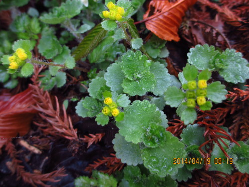 4月21日(月)曇り時々小雨3:30 起床 パソコンに向かう。朝食:卵とじ(玉ねぎ、人参、シイタケ、アブラナ、ハーブウィンナー、卵)、アブラナのお浸し、焼肉6:52 家発 9℃7:03 上の駐車場発 54歩TAKANご夫妻も登る準備をしていたので一緒に登る。9:09 登山口IWATさんが駆け足で下ってきた。7:19 第一休憩場所 7:23 ベンチINABご夫妻、IIDUKさんに会う。IIDUKさんは昨日も登られ、早朝の綺麗な霧氷が見られたそうです。お休み石手前でZINさんの奥さんとHIRATさんに追いつく。7:35 お休み石MIYADER奥さんとOBUTさんが休んでいた。ヒゲネワチガイソウが咲いていた。NOBUSAさんが登ってきた。BABご夫妻に会う。前方の岩場にNAKAZAさん、MATIDさん、ZINさんがいた。登山道を直して下さっていた。8:00 一本檜8:08 石仏HASEGAさんに会う。8:21 水沢山頂着 曇り 6℃ 4966歩北側と東側はガスっていた。南側は鮮やかな緑の山並みに真っ白な雲がまだらにかかり、綺麗だった。今朝の石座メンバー:ZINご夫妻、MIYADERご夫妻、TAKANご夫妻、HIRATさん、OBUTさん、NOBUSAさん、ISIZEKさん、SIZUNさん、MATIDさん、NAKAZAさん、HOSOKAWさんと私 の15人戴いた蓬餅、パイナップル、屋久杉せんべい等ご馳走さま。美味しかったです。8:43 石座発SAKURAさんに会う。8:54 石仏TAMEGAさんに会う。術後、私は初めてお会いしたのですが、今日で4回目だそうで頑張っていらっしゃいます。9:01 一本檜女性、SUGIMOTさんに会う。可愛い牛とお地蔵さんが上の方に移動していました。週末に引っ越ししたようです。岩場のところにミツバツツジが咲き始めていた。登りでは全く気付かなかった。男性に会う。ワニグチソウが10cm程の草丈になっていた。サングラスの女性、隣町のNAKAZAさん、HOSINさん、YAMAMOTさん、HIROTさんに会う。キイチゴが咲き、破れ傘が芽を出していた。9:31 登山口車で移動して山菜取りをする。目的は山椒。林の中には白花エンレイソウ、ユリワサビ、エイザンスミレが咲いていた。アケビの芽、ハナイカダ、ウコギ、ユリワサビを採る。家に帰ってから長女宅に行ったが、予防接種に出かけていて留守だった。山椒を少し摘む。山菜取りのスイッチが入ってしまい、また山に山菜を取りに行く。結構山椒が摘めました。タラの芽が有ったけど、届かなかった。(~13:00)帰りにスパーで買い物をして帰る。急いで、唐揚げ、天ぷら(薩摩芋、ハナイカダ)、アブラナの胡麻和えを作る。15:30 リウマチ外来リウマチの値が44と跳ね上がってしまった。この前検査したのは3月10日。何が原因だったのだろうか?山の登りすぎ?長女がお産できている時でもあった。次回はどうなっているだろうか・・・太田青果で買い物をし、次女宅の助っ人(17:15~21:10)孫2人をお風呂に入れて帰ってくる。