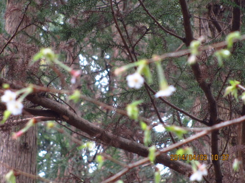 4月6日(日)晴れ昨日、夕食の後、すぐに寝てしまった。目が覚めたのが23時15分。パソコンに向かっていたら大雪による建物被害の写真の印刷をハズから頼まれた。写真8枚をA4用紙2枚に移してプリントアウトしようとしたら、最初の1枚だけ印刷できて、後はエラーとなってしまい、四苦八苦。慣れているウィンドウズXPの方がやりやすいが、ウィンドウズ8に慣れるしかない。四苦八苦しているうちに思った。ひょっとして・・・高い位置に置いてあるプリンターを見てみたら、インク切れだった。インクを補充したら難なく印刷が始まった。勉強になりました。パソコンに向かっていたが、眠気が差してきたので1時間半ほど寝る。5:30 起床朝食準備(ベーコンエッグ、アブラナのお浸し、ミートボールの酢豚風(玉ねぎ、人参、ミートボール、アブラナ))15分ほど時間が有ったので急いでチョリソー&万能ねぎの味噌チヂミを焼く。ボールに万能ねぎを山になるほど入れたので具沢山チヂミが18枚できた。水沢山へ6:53 家発 4℃寒の戻りかこの時期にしては寒い。水沢街道も桜が咲き始めた。椿や白木蓮、スイセン、シバザクラ、・・・浮き浮きしながら花の街道を飛ばす。7:04 上の駐車場発 4℃ 102歩SEKIYご夫妻の車が下ってきた。いつも早いですね。鈴を付けた女性が前を歩いていた。(2度目の石座でTAGOさんと知る)7:13 第一休憩場所7:23 ベンチ空気は冷たいがかなり汗を掻いてきたので上着を脱ぐ。前方をSIZUNさんが登っていた。7:35 お休み石岩場をIIDUKさんが登っていた。HASEGAさんが下ってきた。IIDUKさんもここまでと言って一緒に下って行かれた。小鳥の巣箱が切り株のところに置いてあった。今日、巣箱を取り付けるらしい。7:55 一本檜INABご夫妻、GOTさん、KENMOTさん、ISIさん、ABEさんたちが巣箱を取り付けていた。作業しながら登られたNAKAZAさんに追いつく。宮本さんも下ってきた。隣町の2人の男性が下ってきた。8:07 石仏クリスマスローズと花桃とユキヤナギが進ぜてあった。下ってきたISIZEKさんに会う。8:19 水沢山頂着 6℃ 4805歩SAITさん、男性2人がいた。今朝の石座メンバー:NAKAZAさん、SIZUNさんと私8:44 石座発男女、SAKURAさん、AOIKさん、男性2人、HAGIWAR奥さん、TOSAKさん(4月1日に栃木の三床(みとこ)山に登られたそうです。アカヤシオが満開だったそうです。)、長身のキュートな美人さん、男性、女性、KOBUNさん、男女、男性3人に会う。9:20 お休み石男女、HATISUK奥さん、隣町のNAKAZAさんに会う。HIRATさんが登ってきたので、Uターンして話しながら2度目を登る。NAKAZAさんから戴いたHATISUKさんが作ったフキノトウのおやきを食べながら登る。フキノトウの香りがして美味しかったです。元気が出ました。9:34 お休み石AOIKさん、KOBUNさんが下ってきた。ランニングの人たち6人のグループが登っていた。9:56 一本檜10:04 石仏ランニングの一人は井野のHARASAWさんでここを登られているようです。10:17 水沢山頂着 曇り 10℃ 10371歩雪の上州武尊山が綺麗に見えた。谷川近辺は雪雲で覆われていた。祠の後ろのカタクリガ1輪咲いていた。他に9個の蕾を持っていた。石座に移動してチヂミで2度目のお茶会。登ってきたZUGIMOご夫妻も加わる。登ってきたTAKADさんにチヂミをあげたら、子供のころ5円で食べたご馳走だったと懐かしんでくださった。取っといて酒の肴にするともおっしゃっていた。そんなに懐かしい食べ物だったとは、嬉しいですね。10:42 石座発トレイルマラソンをしている眼鏡をかけたTAGOさんが2度目を登ってきた。ISIKURさんたち4人、ARAIさん、目のくりくりした男性(お休み石からUターンして1.5回目だそうです。)に会う。ISOGAさんに会う。10:53 石仏KOSUGさんに会う。11:15 お休み石ARAさんが下って行った。KOITABASさんに会う。11:37 登山口TAKADさんが休んでいた。この後、また登るらしい。11:44 上の駐車場着 15050歩今日も沢山の人と会いました。HIRATさんと話しながら登ってきたので楽しく登って来られました。昼食を済ませ、マイ菜園に行く。(13:30~16:00)きゅうりを植える所に肥料をまいて耕し、マルチをかける。アブラナと万能ねぎを収穫する。昨日、留守だった畑のすぐ裏の家に万能ねぎを届ける。時間になったので急いで家に帰り、万能ねぎを刻み、朝と同じチヂミを18枚焼く。5時過ぎに長女家族が寄る。10日ほど見ないうちに義康はふっくらとしてずっしり重くなっていた。義康を6時に風呂に入れるので、すぐに帰ると言う。野菜やチヂミなどを持たせる。防草シートを運ぶのでハズが手伝いに行く。私は温泉に行く。至福のひと時でした。(19:00~21:00)
