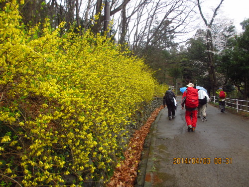 4月12日(土)晴れ5:00 起床 朝食:卵焼き、ニラ玉、残り物(アブラナの胡麻和え、ポテトサラダ、ネギの酢味噌和え)昨日、フキノトウを採ったのでフキノトウのおやきを作る。(自家製味噌、卵、砂糖、重曹、冷ましたご飯、フキノトウ、薄力粉、水)19個6:50 家発 7℃水沢街道の桜は満開である。大駐車場の桜は5~6分咲き。7:03 上の駐車場発 159歩NOBUSAさんと一緒に登る。男性が下ってきた。ヒナスミレが道端に咲いていた。目のくりくりしたOSAWさん、男性2人が追い越して行った。7:09 登山口花芽を持ったユキザサが10センチぐらいの丈になっていた。登山道には所々に生えているタチツボスミレも存在感を増している。良く見ると蕾を持った物もある。赤いイカリソウが咲き始めていた。7:21 第一休憩場所TAKADさん、若者が下ってきた。お休み石にGOTさん、KENMOTさん、INABご夫妻、ISIさん、ABEさんたちがいた。尾瀬情報を伺ったら、5月11日まで上の駐車場に行けるそうだ。花なら坂戸山や八海山などいいんじゃないん?と。いずれも確認してとのこと。アブラチャンとフサ桜が咲いていた。巣箱は39個取り付けたそうです。(64個つける予定だそうです。)巣箱にはかなり小鳥たちが入っているようです。女性、男性3人、男女、SIONさんに会う。8:00 一本檜眼鏡のエンジ服の男性、HASEGAさん、男性に会う。HASEGAさんと立ち話。分かりやすく説明されたセキュリチィーのCD、SIZUNさんの後に使わせて戴きます。いつも分かりやすく説明して戴いているのですが、中途半端なままです。小鳥の鳴き声がビービービーと聞こえてきた。大沢さんが下ってきた。8:17 石仏IIDUKさん、女性、INOUEさんに会う。尾根の日陰には霜柱ができていた。ツツピーツツピー、甲高い小鳥のさえずりが聞こえてきた。8:27 水沢山頂着 晴れ 11℃ 5071歩春霞ではあるが八ヶ岳、北の山々が昨日よりもくっきりと見えた。富士山も薄っすらと見ることができた。今朝の石座メンバー:MIYADERご夫妻、ISIZEKさん、HOSOKAWさん、OBUTさん、HIRATさん、NOBUSAさんと私SEIMURご夫妻、ISIKURさん、KOBUNさん、女性が登って行った。ボックスを探しに行ったNAKAZAさん、MATIDさん、NUMAZAさんが急な斜面を登って石仏のところに上がってきたそうです。NAKAZAさん、MATIDさんが石座に到着し、小休止してから下り始める。(9:12) 女性3人、男性3人に会う。9:24 石仏若い女性、男性2人に会う。9:29 一本檜女性2人、短パンの男性、ランの男性、広馬場のOTAKさん、女性、男性5人、TOSAKさん、KANAIさんとお友達、男女、隣町のNAKAZAさん、男性に会う。9:42 お休み石石仏から下られたNUMAZAさんが休んでいた。高崎女子高の山岳部の4人と引率者、男性、前橋女子高の山岳部の4人と引率者、親子連れ(5歳)。、男性13人、女性4人、TAKADさん、2家族6人、4人連れ、女性6人、男性6人、前橋高校山岳部に会う。10:02 登山口男性7人、女性1人に会う。10:07 上の駐車場着 9874歩今日は休日のせいか登山者が多かった。家に着いて、山茶花の枯れた花を片付ける。その後、のんびりと朝昼食をとる。我が家に来ることになっていた次女家族が完成した長女宅を見に寄っていると言うので、ベイシアでお昼を買って合流する。お昼を食べた後、幸佑は金柑もぎと紙飛行機作り。長女は金柑でジャム作り。優奈は寝室でねんねすると行って廊下に座り込み、ぐずっていた。(最終的にはリビングでぐっすり寝ていた。)喜康は大人しく一人遊びをしている。抱っこは縦抱っこがいいらしい。話しかけると口をとがらせて「あー」「うー」とか言い、何か言いたそうである。周りから「おばあちゃんは精神年齢が喜康と同じだから気が合うんじゃない。」と言われたりして・・・その後は草むしりや水まきをする。庭を平らにして戴いたのですが、風が強いと砂ぼこりがすごいので、ずうっと水をまき続ける。一段高くなった植栽にも水やりをする。西側の築山は、ほぼ前の築山と同じですが、水が流れる部分だけは黒っぽい巨石になっていた。池の周りと底には石が敷かれていた。上の池と下の池の境には、前の庭で使われていた石をくりぬいた物が使われ、流れ落ちるようになっていた。庭の完成が楽しみです。午後5時過ぎに家に帰る。