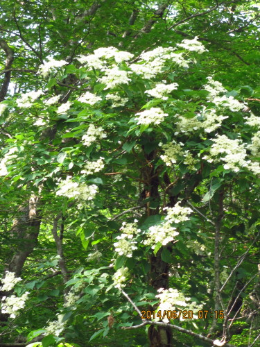 6月21日(土)曇り 16:00頃から雷雨5:30 起床前日の寝不足と歩き疲れ(25234歩)と暑さからすぐには寝られずに、水代わりにワインを飲んでしまった。今朝はなかなか起きられず、朝の仕事に取りかかったのは5時半を回ってから。朝食作り。最近は短時間でできるもののワンパターンである。卵焼き、肉野菜炒め(玉葱、キャベツ、ニラ、豚肉)、トマト6:46 家発21℃6:57 上の駐車場発 88歩登山道脇の景色はいつの間にか深緑色の世界へと変わりつつあった。そんな中、山アジサイの白い装飾花が一際目を引く。宮本さんが、「その辺を皆さんが歩いていますよ。」とおっしゃって下って行かれた。岩田さんも、「皆さん、すぐ前にいますよ。」と教えてくださった。俄然、ピッチが上がる。馬場ご夫妻が下ってきた。7:02 登山口7:11 第一休憩場所上の方から常連さんの話し声が聞こえたような気もするが・・・手拭いで汗をぬぐいながら歩くが、吹き出す汗は登山道にもぽたぽた落ちる。ベンチでご夫婦、女性2人が休んでいるのを横目で見ながらひたすら速足で登る。青いおそろいの上着を着た男女、男性3人に会う。7:25 お休み石塩野さんが下ってきた。エゴの花の落花はお休み石から上の方に移りつつある。コアジサイの花が目に留まる。長谷川さんに会う。平標山の花の開花の様子と信澤さんが見た?花(私も?のままですが・・・)を見たことを話す。静野さんに追いついたので先に行く。7:42 一本檜斎藤さん、小野里さん、稲葉ご夫妻、阿部さん、後藤さん、滝野さん、剣持さん、石井さんに会う。平田さん、小渕さん、宮寺奥さん、桜井さんにやっと追いつく。ここまででタオルの手拭いがびっしょりになるほど汗をかいたので、後は話しながら一緒に登る。石仏下のヤマボウシの花が見頃であった。黒い服装の若い女性、グリーンの服の女性、女性2人、小沢さんに会う。8:04 水沢山頂着 曇り 周囲はガスに包まれていた。20℃ 4665歩今朝の石座メンバー:中沢さん、宮寺ご夫妻、沼沢さん、石関さん、桜井さん、静野さん、小渕さん、平田さんと私まさか山頂でアイスクリームを食べられるとは思いませんでした。最高に美味しかったです。ごちそうさまでした。男性3人、女性が登って行った。8:34 石座発男性3人、女性4人に会う。8:45 石仏男性2人に会う。8:51 一本檜男性7人、猪俣さん、隣町の中沢さん(175回目)、女性2人に会う。9:04 お休み石男性4人、女性3人、実業高校の生徒19名、須田さん、男女、若い男女3組、男女2組に会う。登山口上のクモキリソウがまだ咲いていた。9:24 登山口若い女性3人、男性、吉田さん、広田さんに会う。林道脇に咲いていた小さな黄色い花はコナスビだそうだ。ハンショウヅルの羽毛上の花柱が付いていた。9:30 上の駐車場着 9638歩マイ菜園に寄り、インゲン(数本)、きゅうり(2本)、青紫蘇、ズッキーニ(うまく受粉してなさそうなもの)を取る。そのあと、浅鍬で草を掻く。庭の草むしりをしてから昼食(12:00~)休憩してから外仕事と思っていたら雨が降ってきたので、室内でだらだら過ごす。