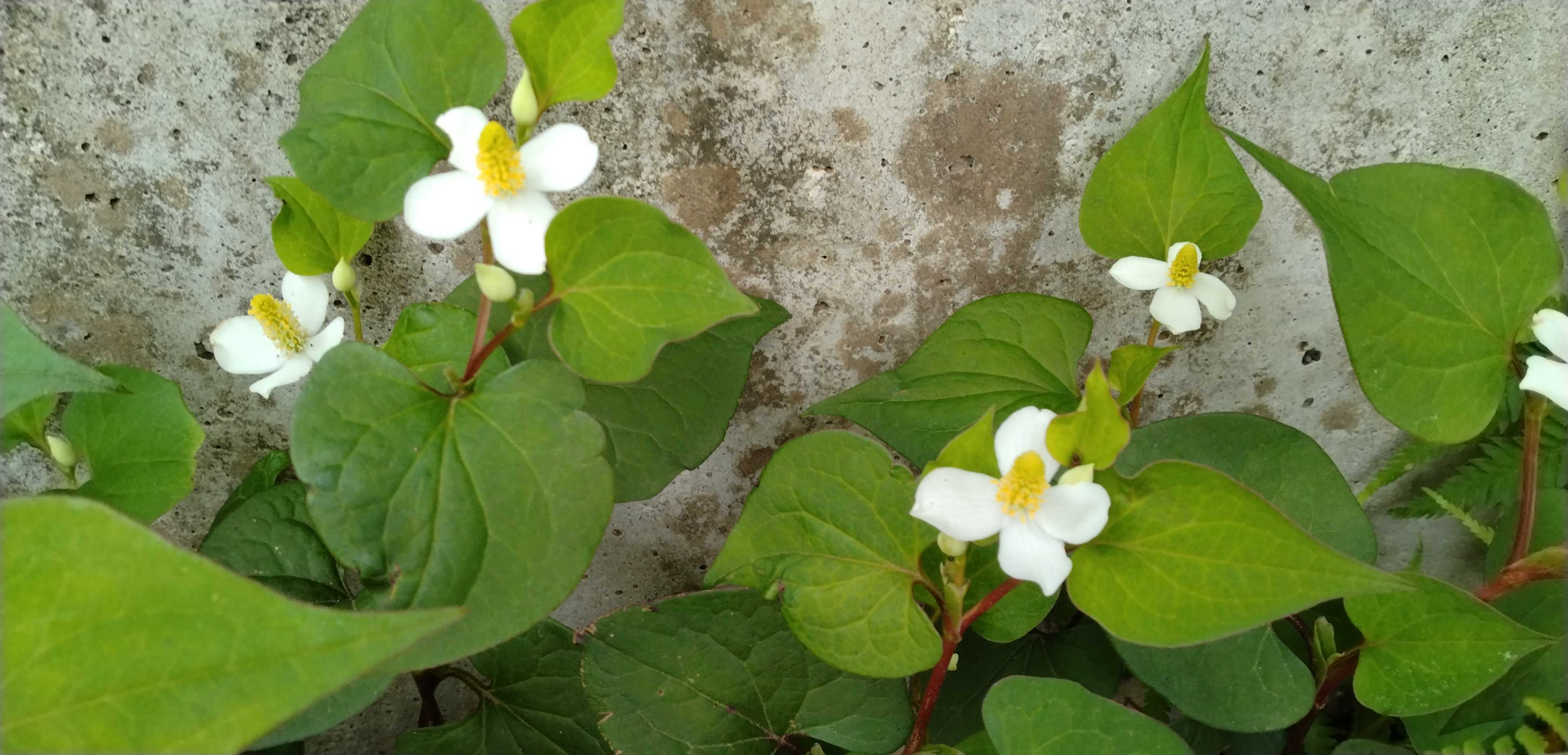 ドクダミ、花はきれいなんですけれど、油断しているとそこら中にはびこってしまう。