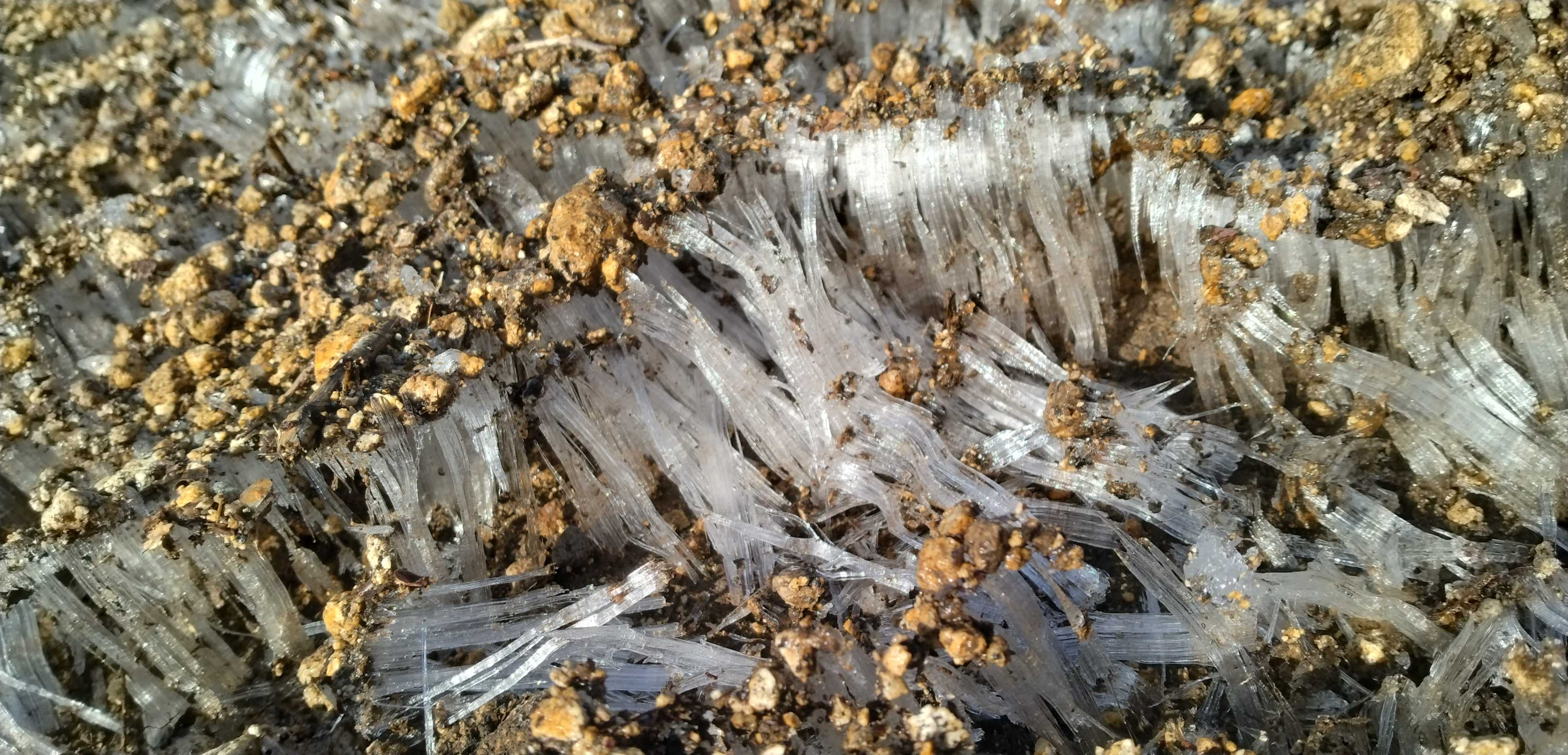 登山道で見られる霜柱は3センチ程あり、登るに連れて長さを増していた。