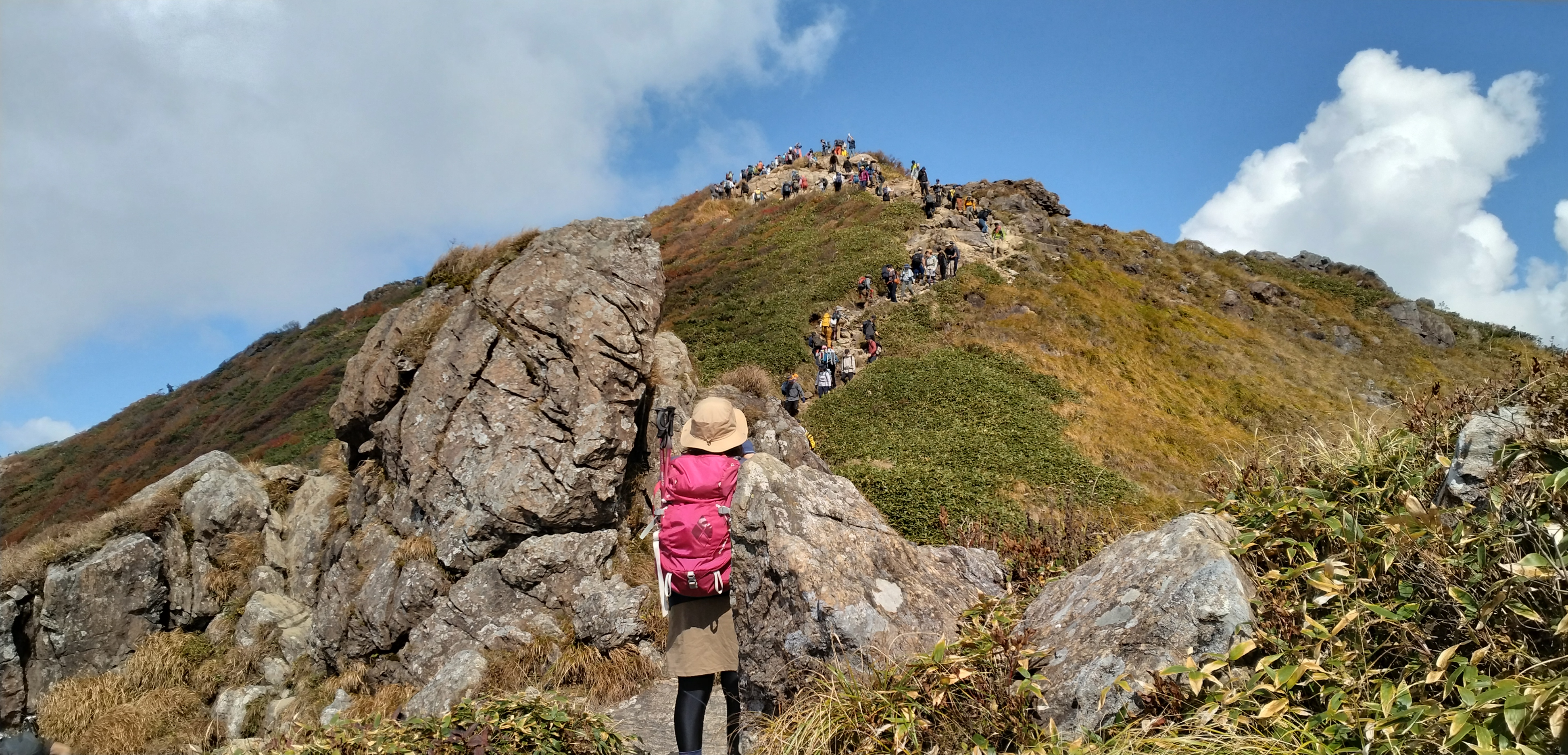 鎖場や急なガレ場で渋滞となり、止まり気味。