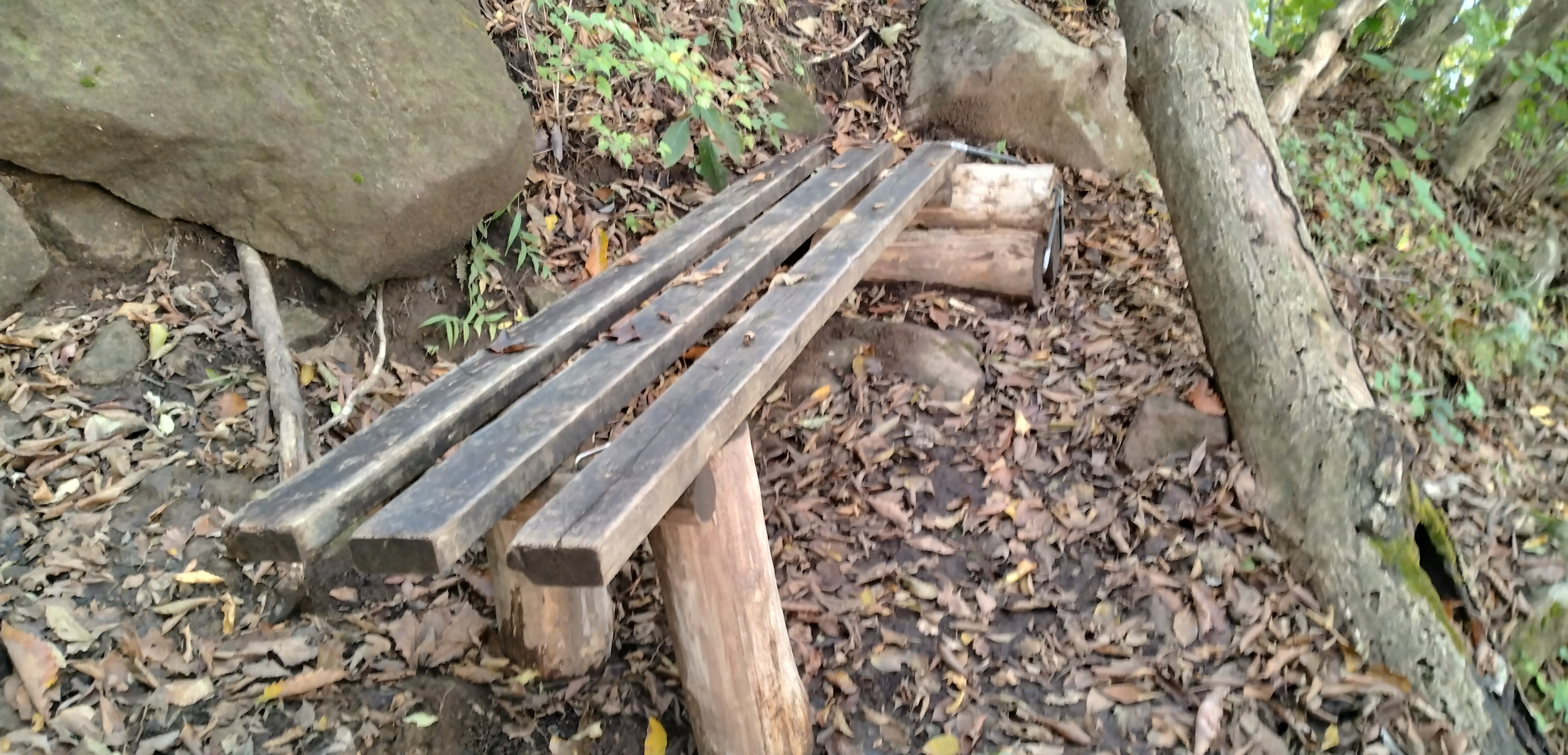 第二ベンチ下の急登手前に座りごこち良さそうなベンチが出来ていた。