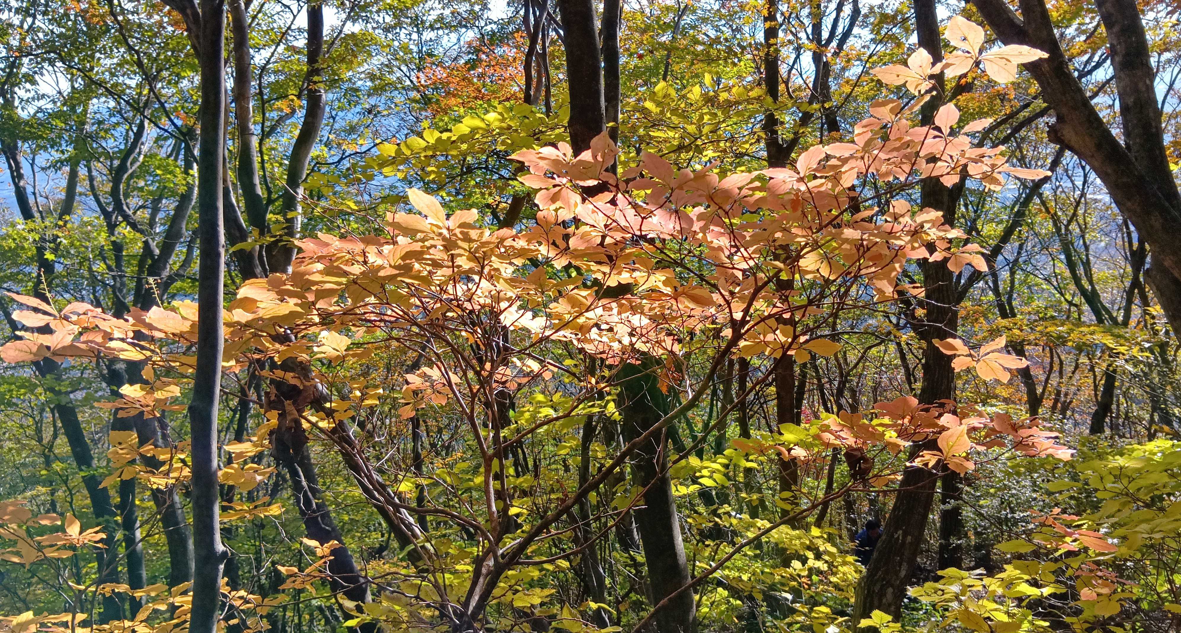 急登手前の僅かな平らな場所で、、ラジオ体操の放送に合わせて体操をしていた。