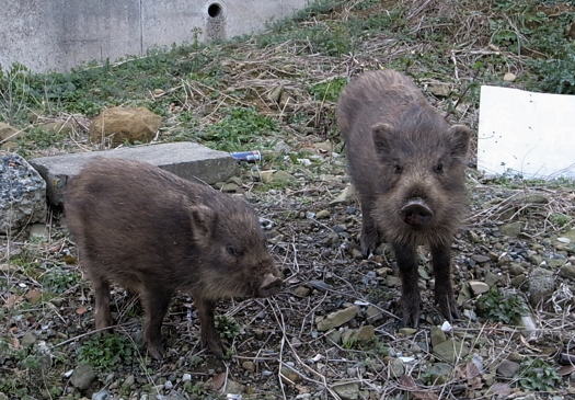 今年はヘビ年だけれどウリボウが挨拶に来てたよ♪ 野生なのに人間を恐れてないし逃げないので写した まじまじとよく見ると可愛らしい顔してるなぁ〜! 写したのは午後3時、山にエサが少ないのだろうか ここは住宅地だけれど二輪熊も住んでるからかな?